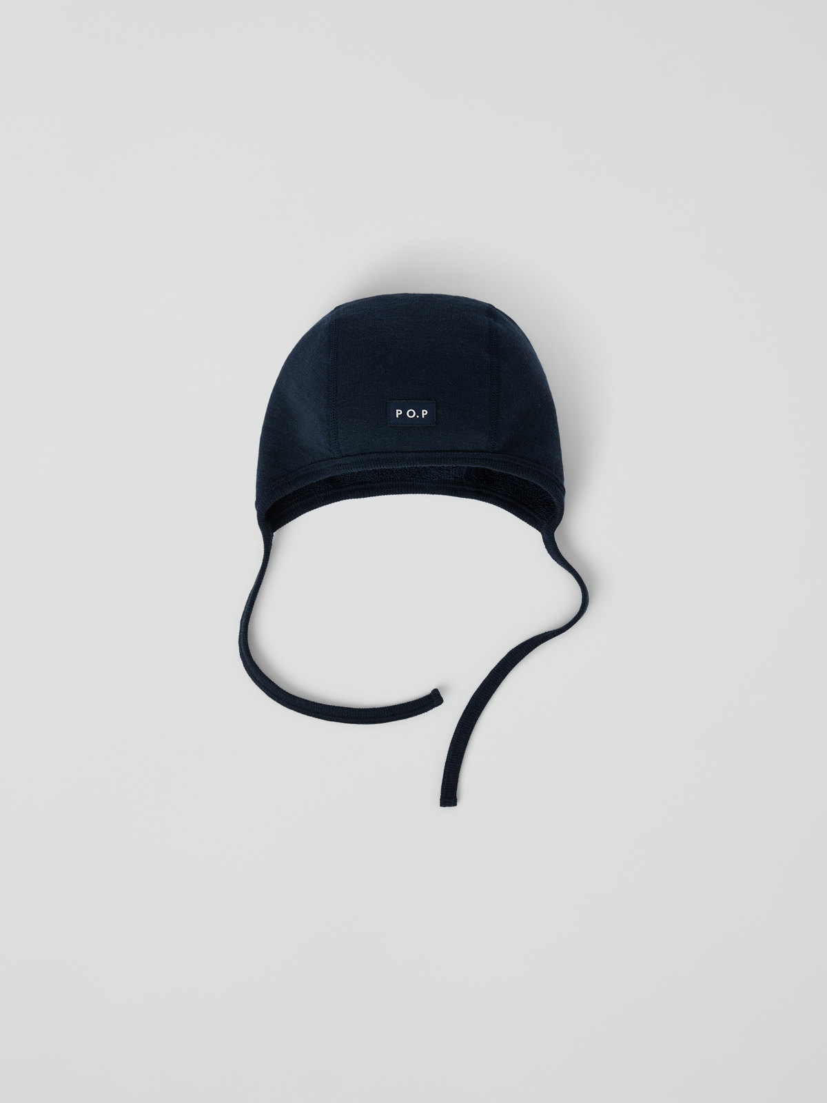 Hjälmmössa för baby i värmande ullfrotté av merinoull – ett måste i kylan! Ullfrottén suger effektivt upp fukt och håller barnet varmt och torrt, den gör även att hjälmen känns lite kraftigare och öglorna i frottén gör att luften cirkulerar. Mössan är sydd med extra mjuka sömmar som inte skaver.