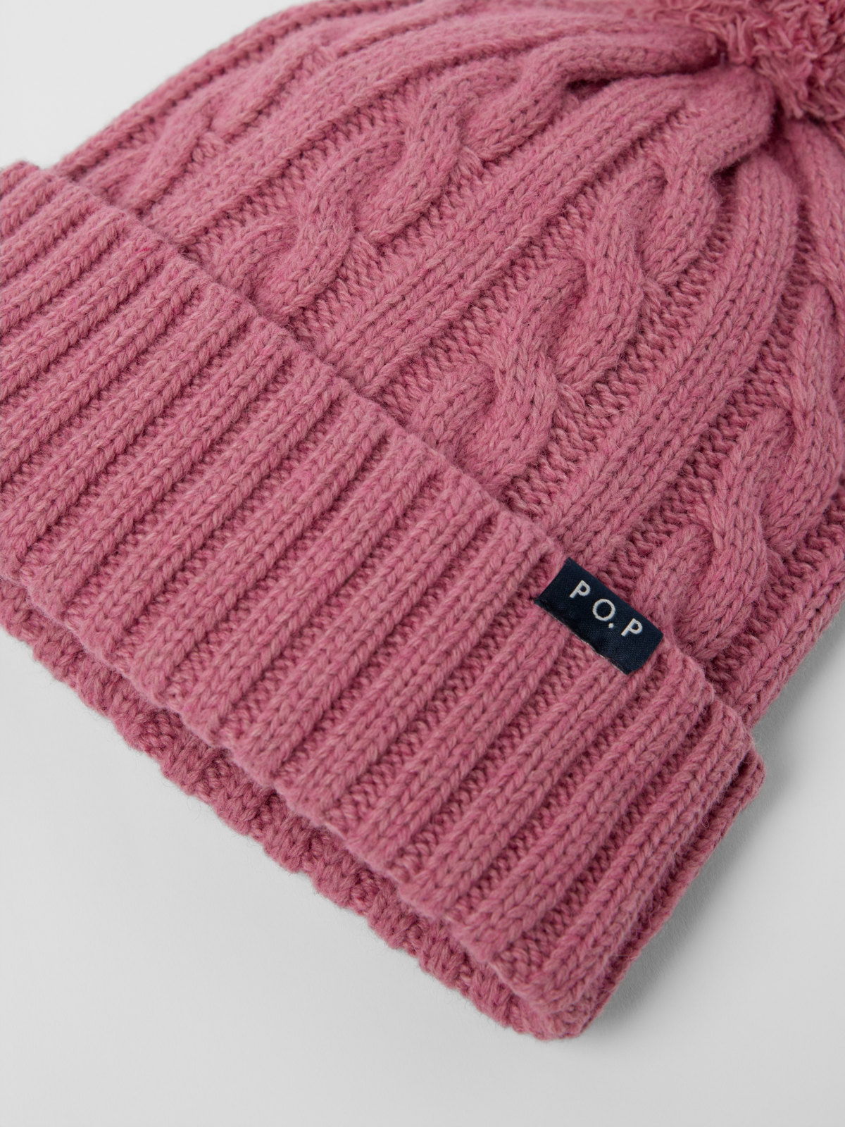 Kabelstickad mössa i värmande ull- och polyestermix med fin pompom och mjukt uppvik. Ullen i mössan hjälper till att reglera kroppstemperaturen och värmer även om den blir blöt, och polyestern hjälper till att transportera bort överskottsvärme och fukt.