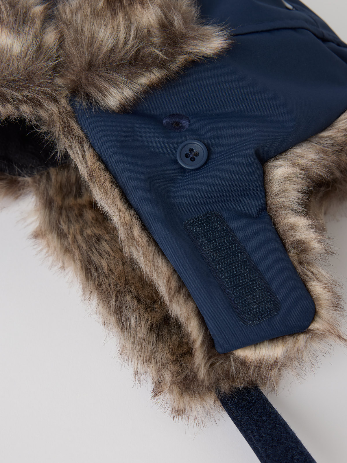 Vind- och vattentät trapper hat ARCTIC med värmande fleecefoder av återvunnen polyester – en rejäl mössa som skyddar. ARCTIC är vår varmaste klädserie, designad för de riktigt kalla vinterförhållandena. Mössan har god andningsförmåga och stängs under hakan med kardborreband. De små öronlapparna kan fästas upp eller ned med knappar.
