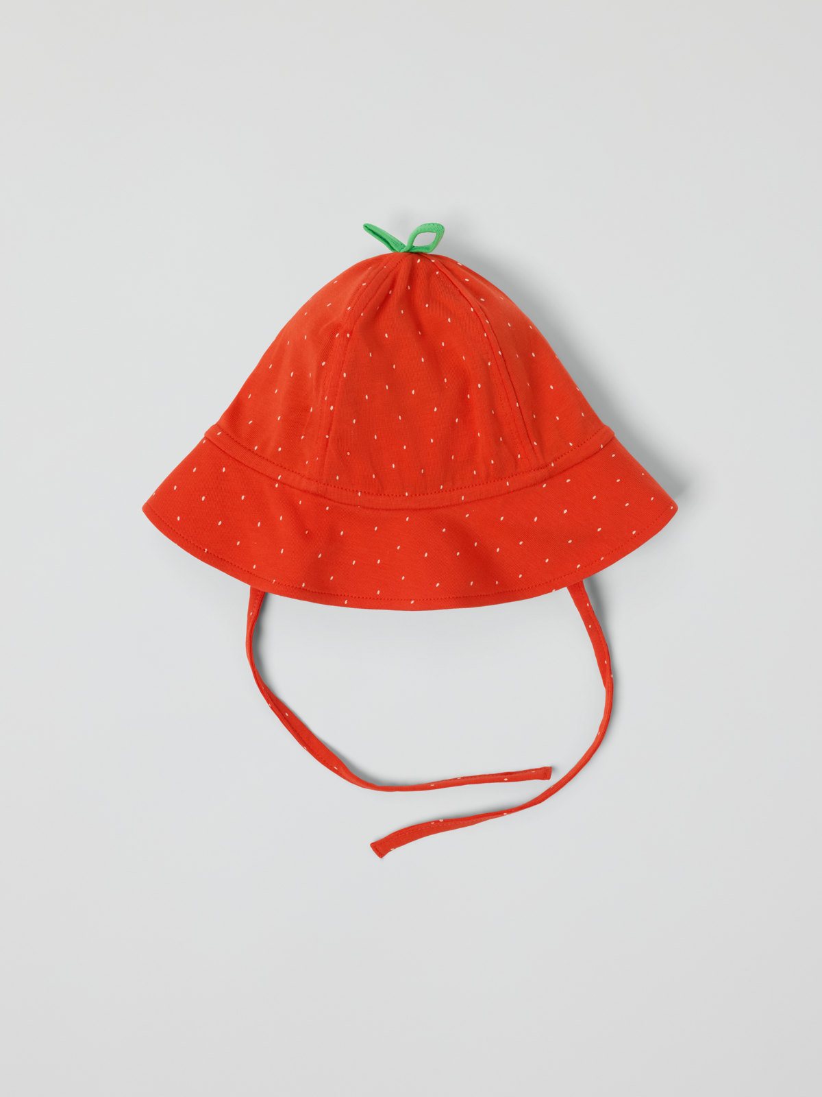 Solhatt i ekologisk bomull – ett måste för de små i solen! Solhatten är helmönstrad med bär och har ett mjukt knytband som håller den på plats.