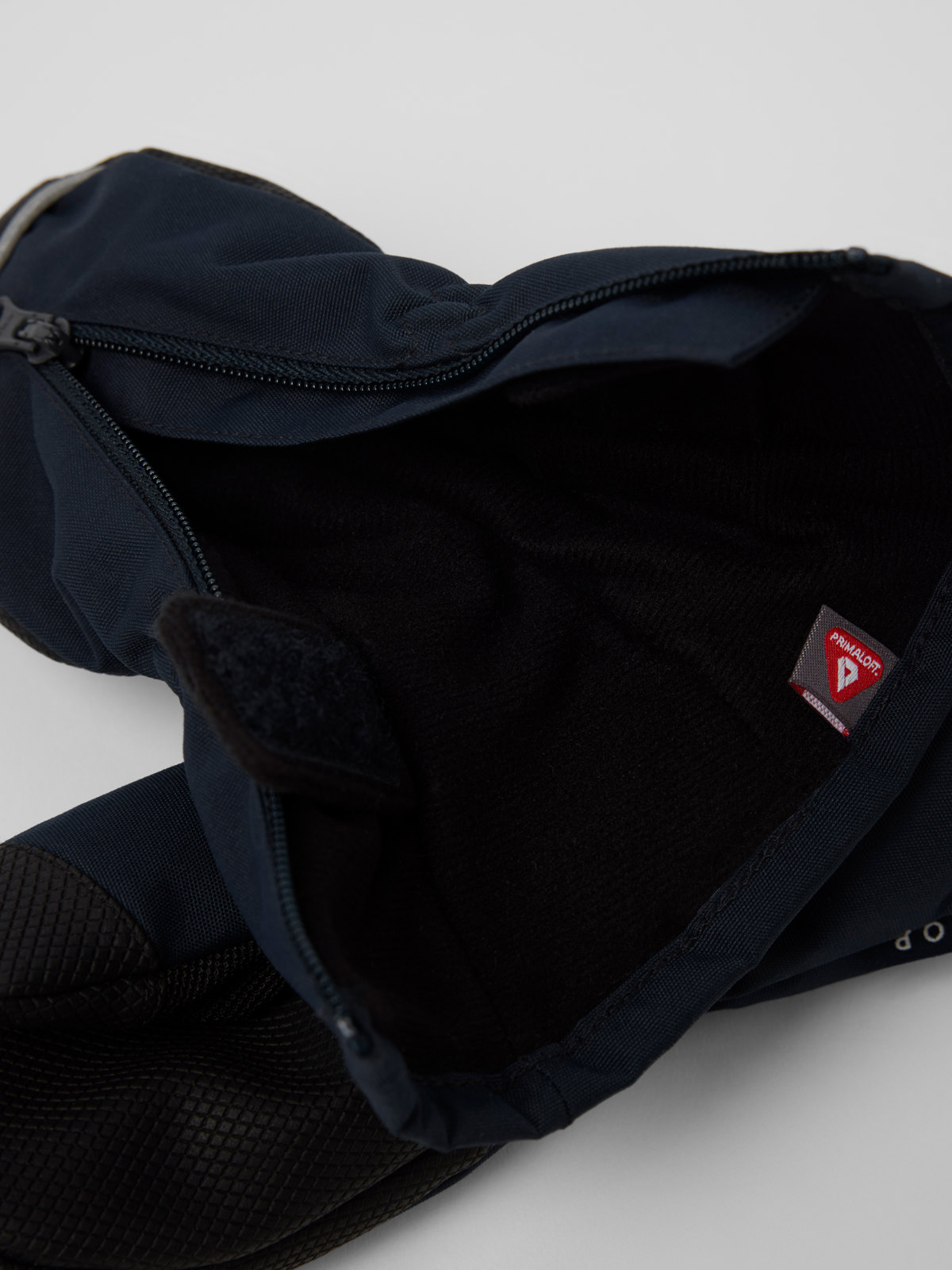 Enfärgade vantar i vind- och vattentätt material med värmande vaddering och smart dragkedja – supersmidiga att ta på och av!