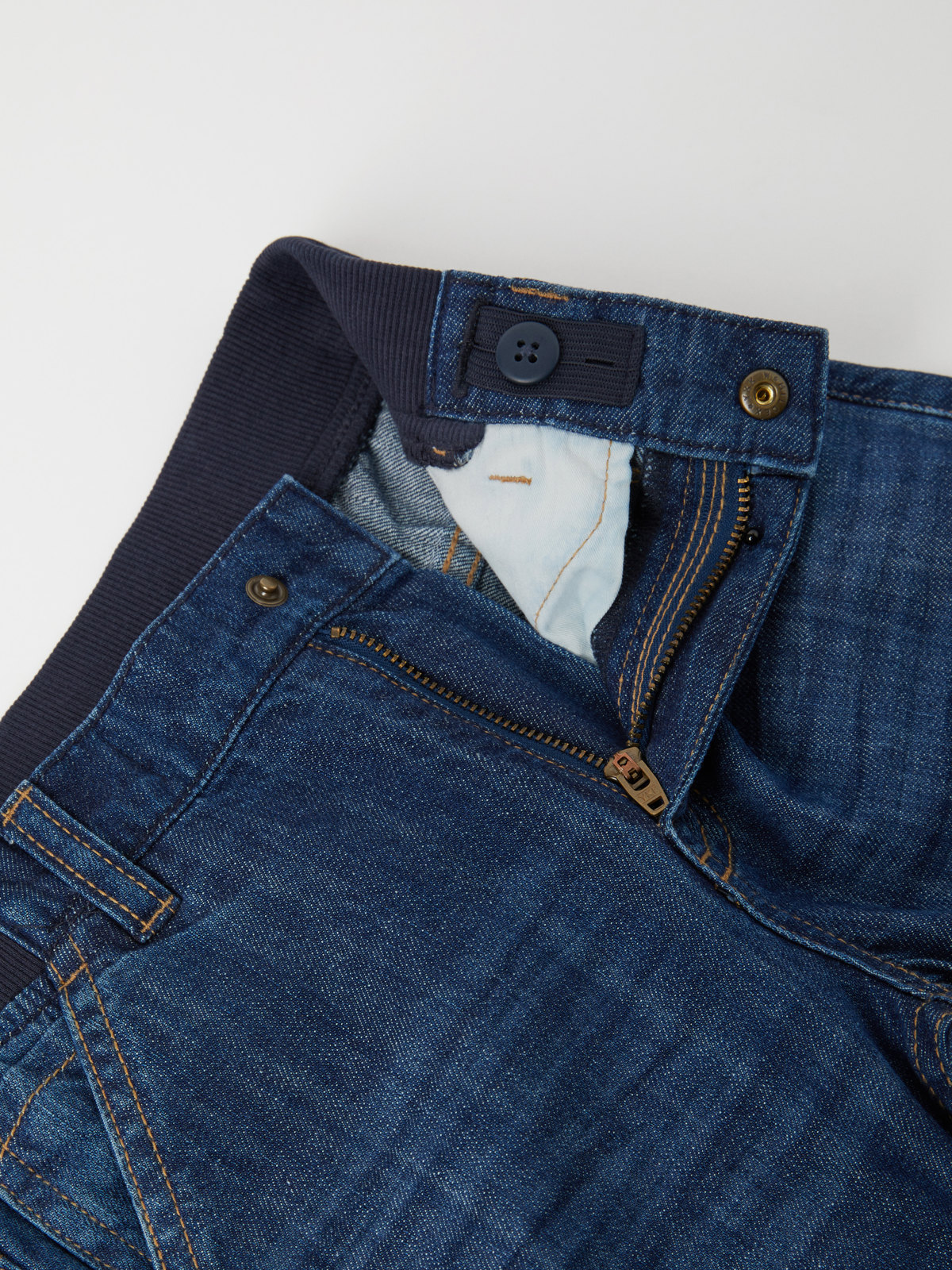 • Justerbar midja med knapphålsresår