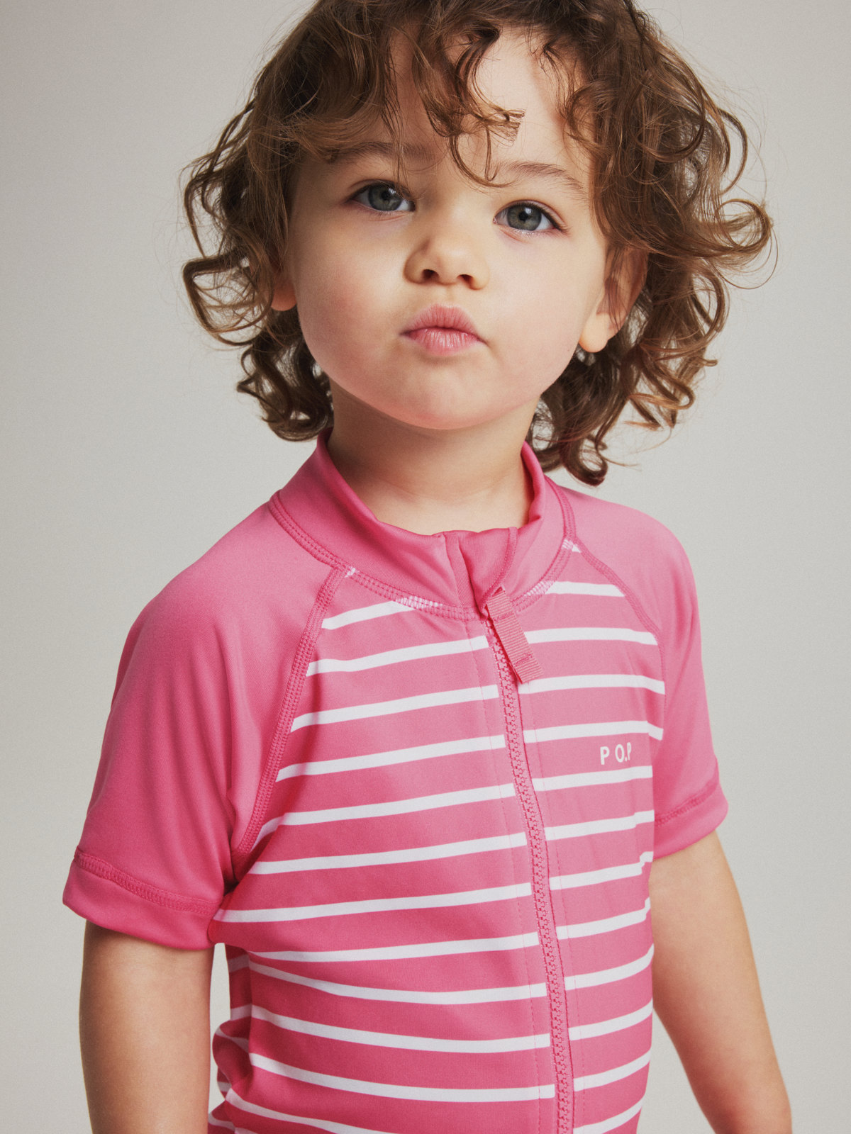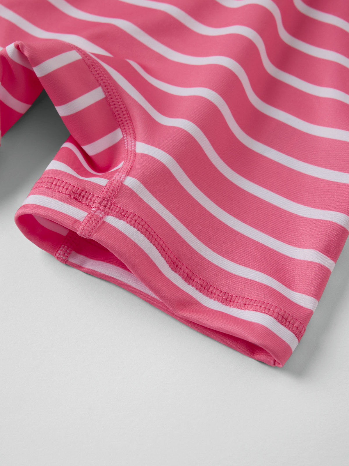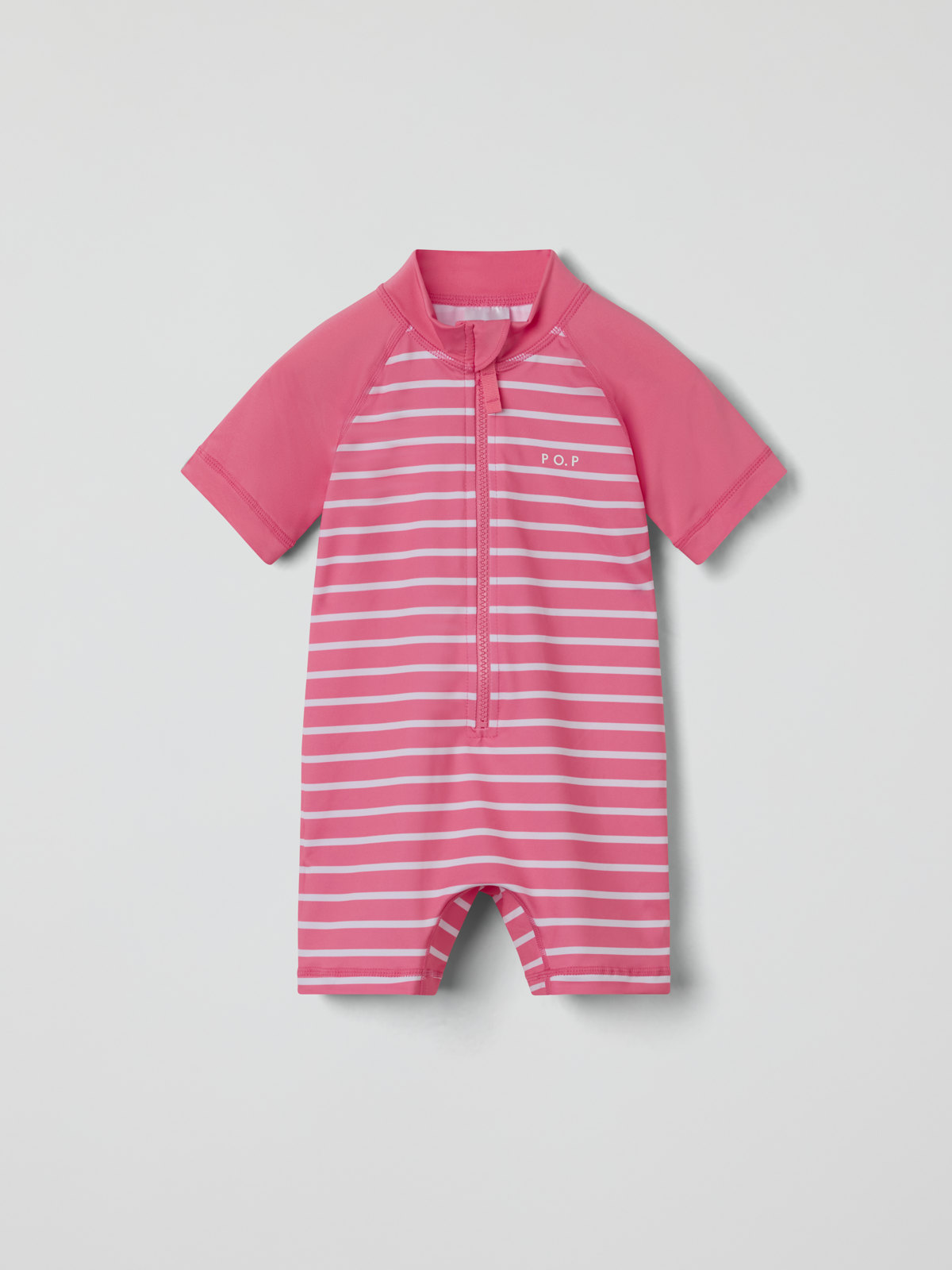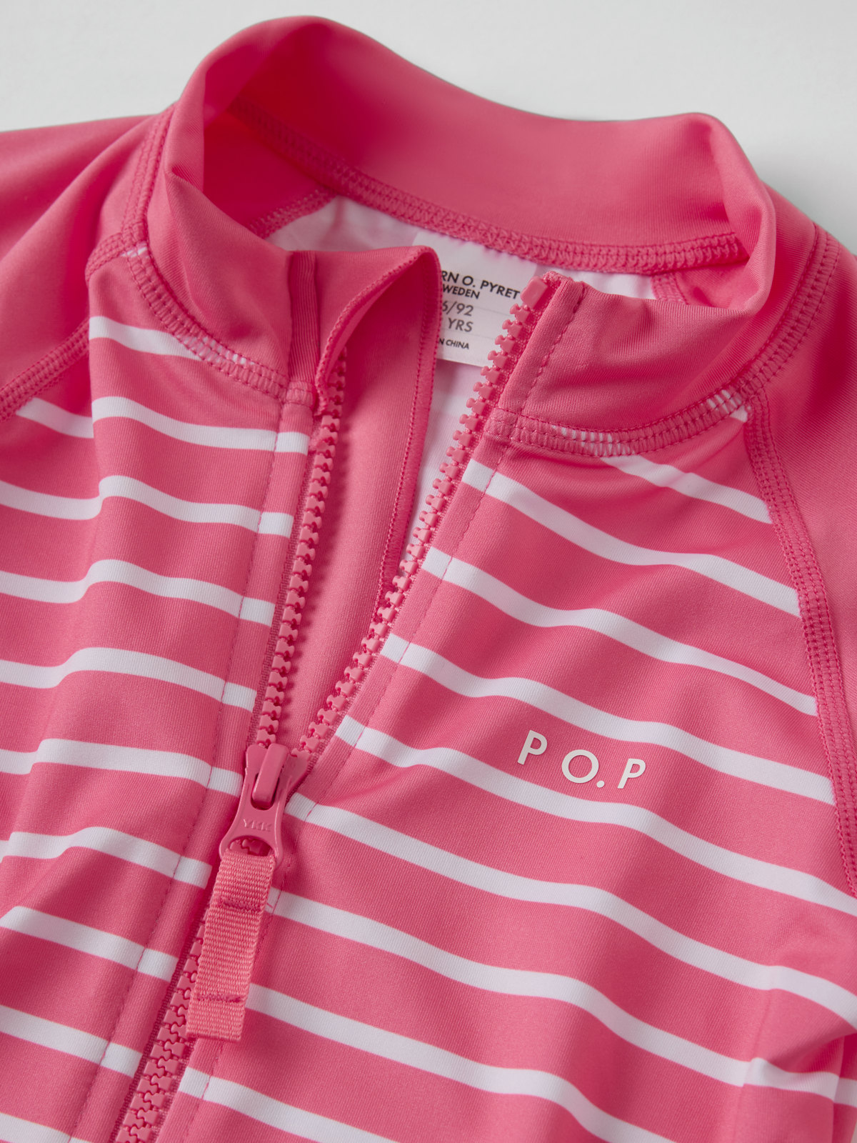 Vår klassiska randiga UV-dräkt med UPF 50, tillverkad i mjukt och skönt material av återvunnen polyester och sydd med extra mjuka sömmar som inte skaver. Dragkedjan fram gör den lätt att ta på och av och har ett skydd högst upp för att inte skava mot haka och kind.