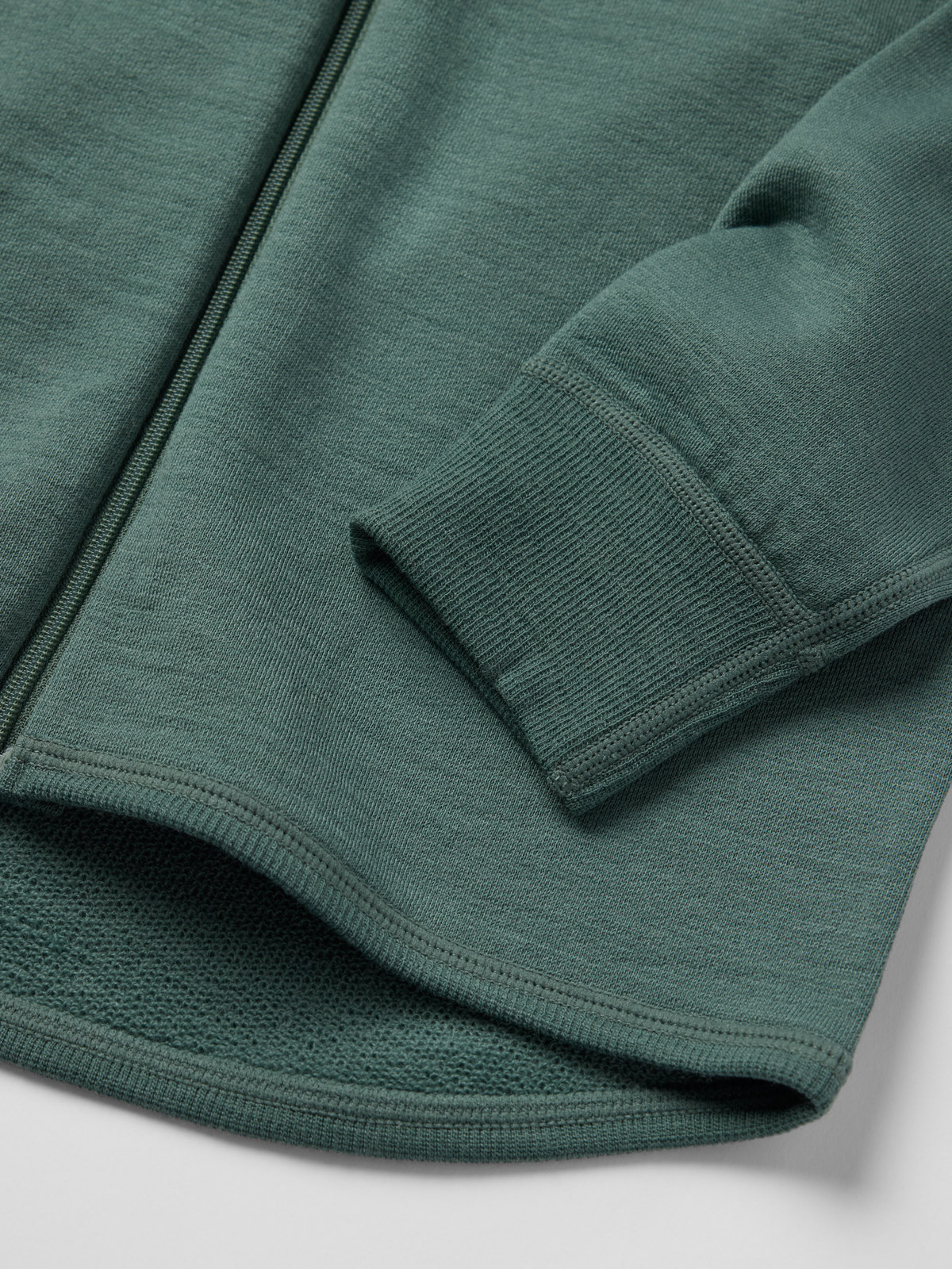 Varm och tjock tröja i mjuk ullfrotté – självklar favorit i kylan! Tröjan är tillverkad av merinoull som effektivt suger upp fukt och hjälper till att reglera kroppstemperaturen. Frottén håller luften intill kroppen som ett värmande lager och ullen i sig håller värmen samtidigt som den andas. Matcha med tillhörande byxa!