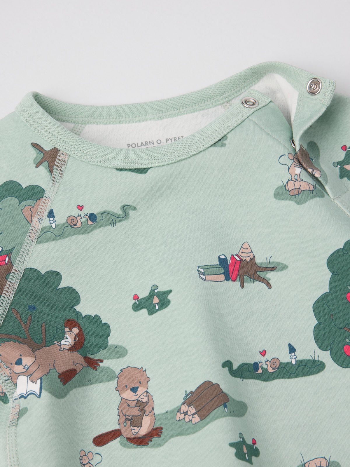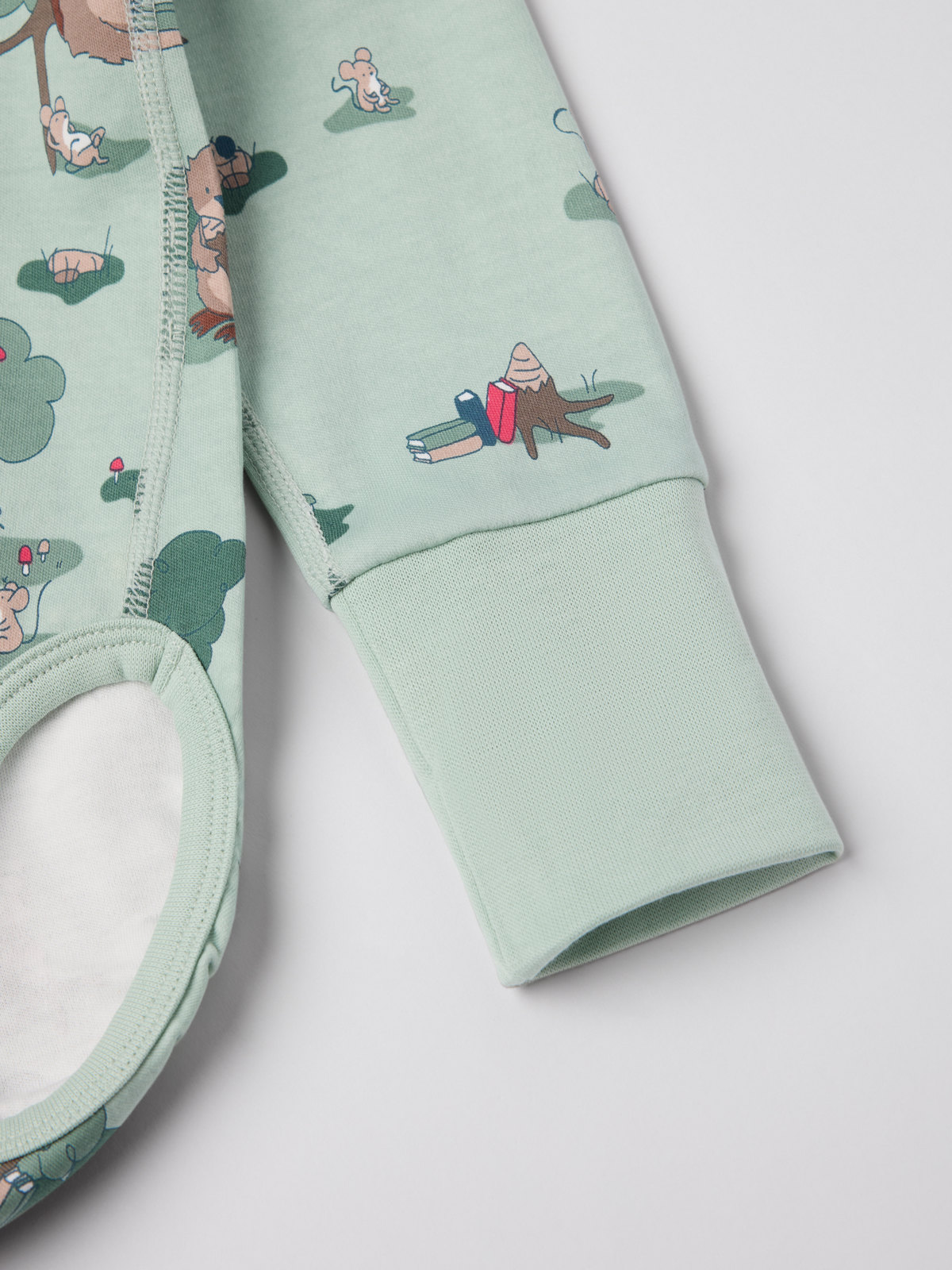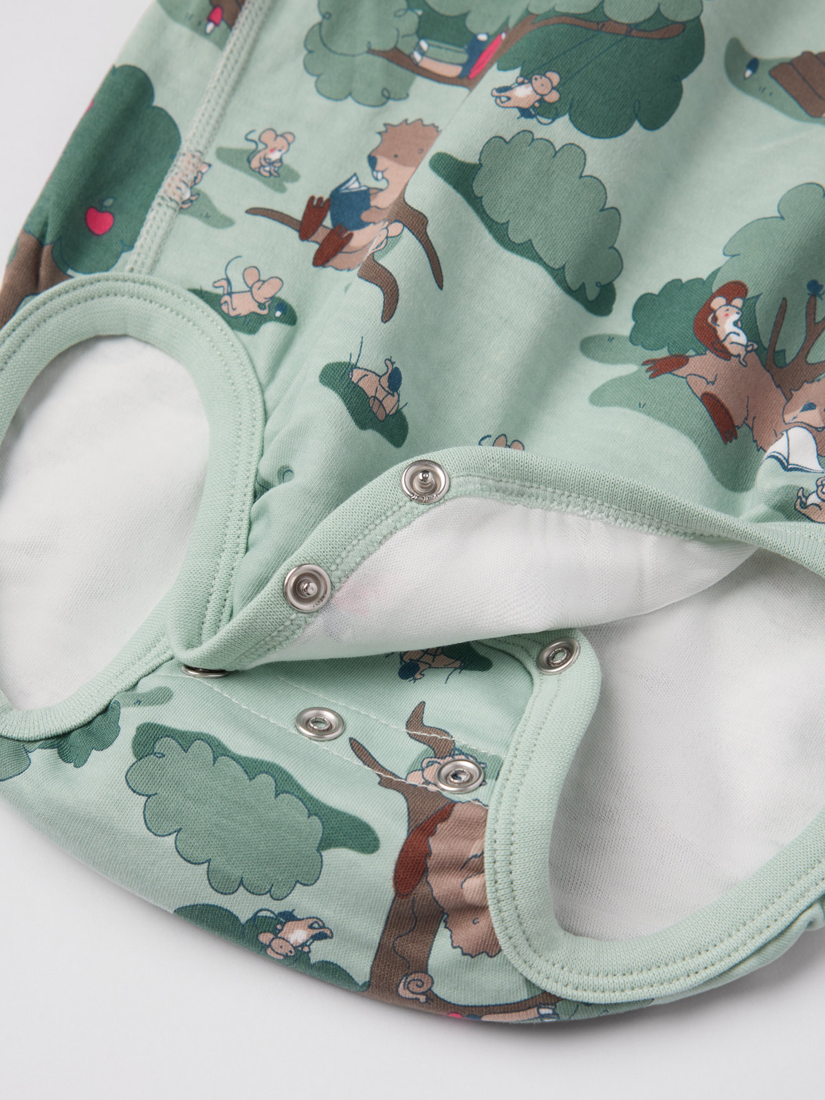 Förlängningsbar body i 100 % ekologisk bomull. Tack vare den smarta lösningen med en extra rad tryckknappar i grenen och nedvikbar mudd vid ärmsluten kan bodyn växa tillsammans med bebisen!
