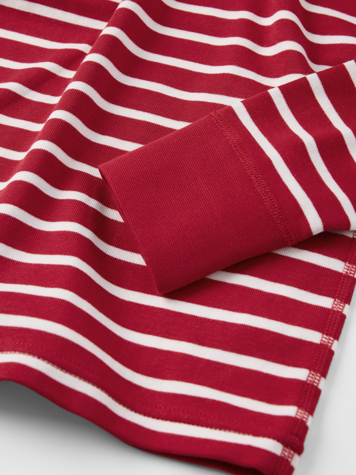 Ribbad trikåtröja i 100 % mjuk ekologisk bomull. Tröjan har vår klassiska rand med mjuk ribbad mudd kring halsringningen och ärmsluten.