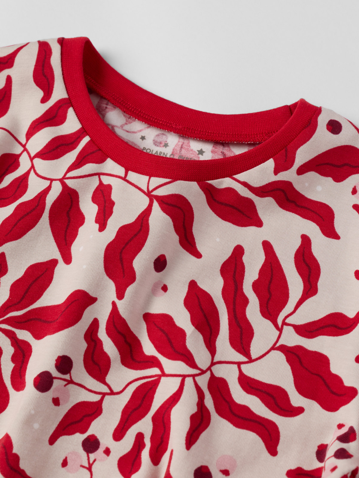 Tvådelad pyjamas i mjuk ekologisk bomull sydd med extra mjuka, platta sömmar som är skonsamma mot känslig hud. Både byxan och tröjan är raka i modellen vilket ger en luftig och bekväm passform.