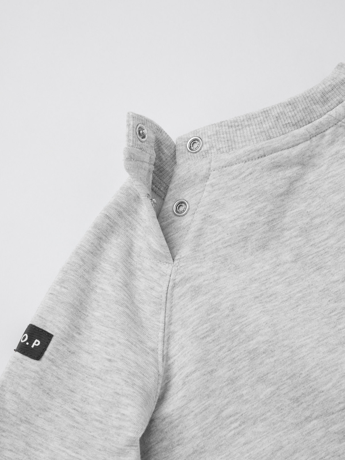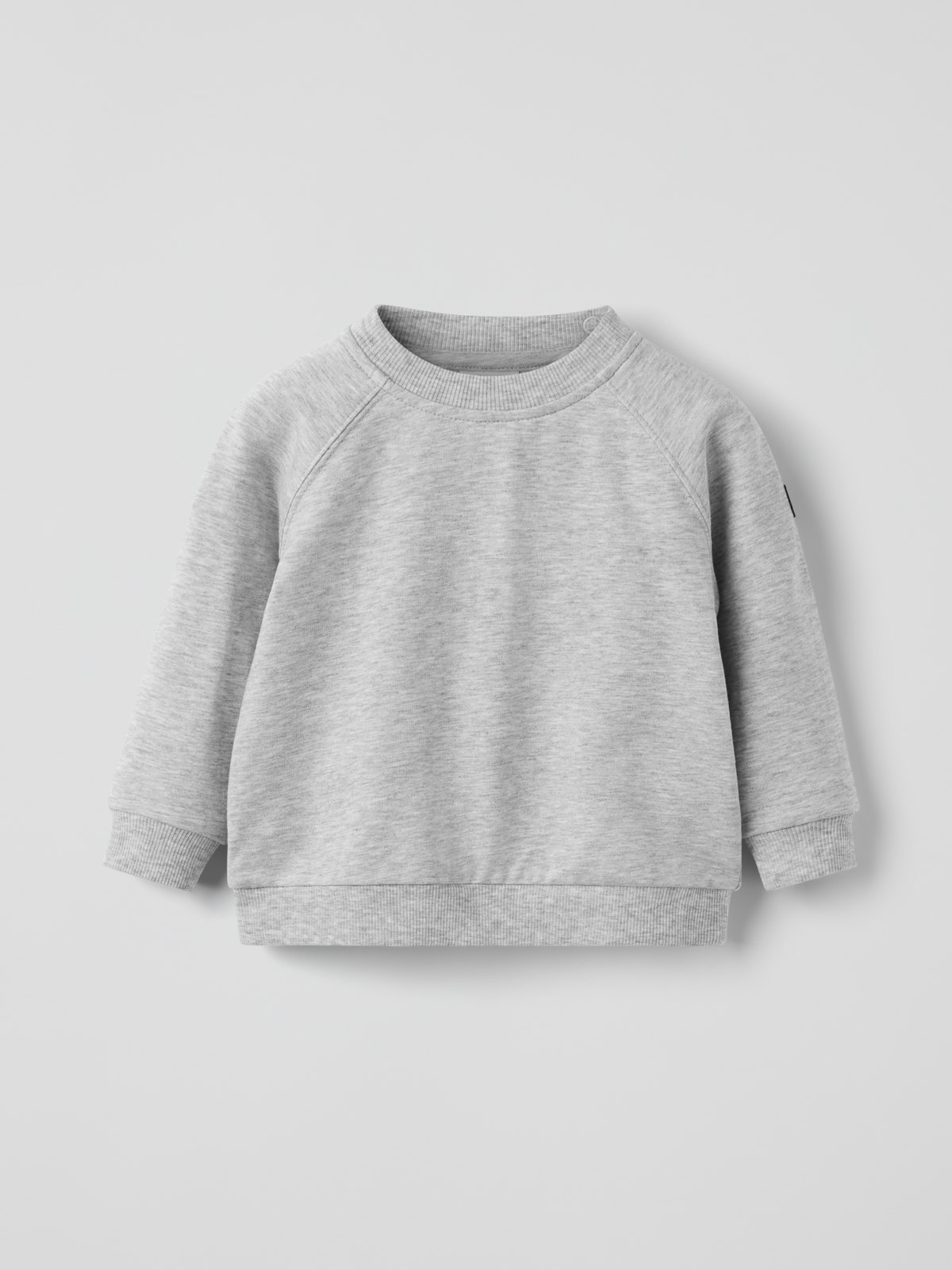 Tröja i 100 % ekologisk bomull med mjuk sweatshirtkvalitet, för baby. Perfekt att ha till alla tillfällen! Tröjan har ribbad mudd i halsringning och ärmslut. Tryckknapparna bak på ena axeln underlättar klädbyten.