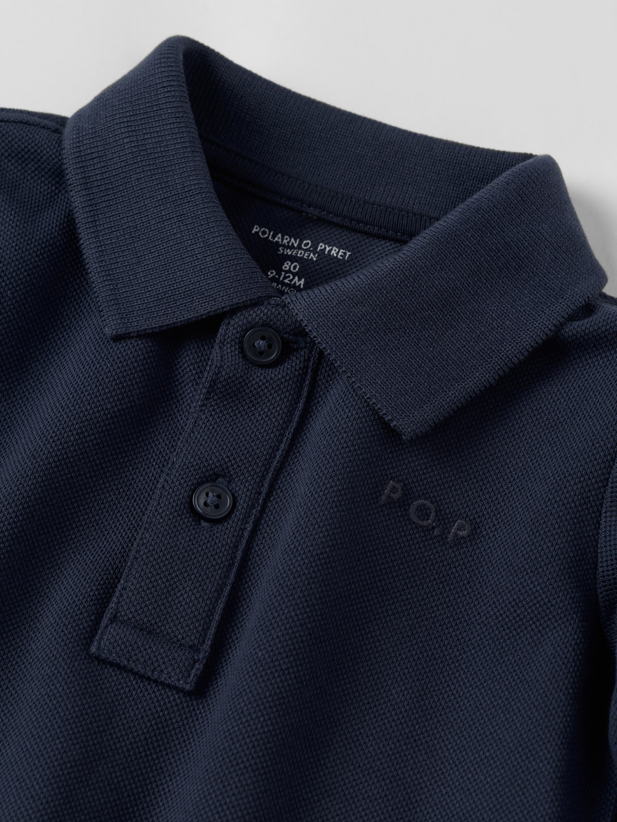 OBS! Den här produkten har ett fabrikationsfel. Pikétröja i 100% ekologisk bomull för baby – mjuk och fin till både vardag och fest! Tröjan har mjuk krage och knappslå fram.