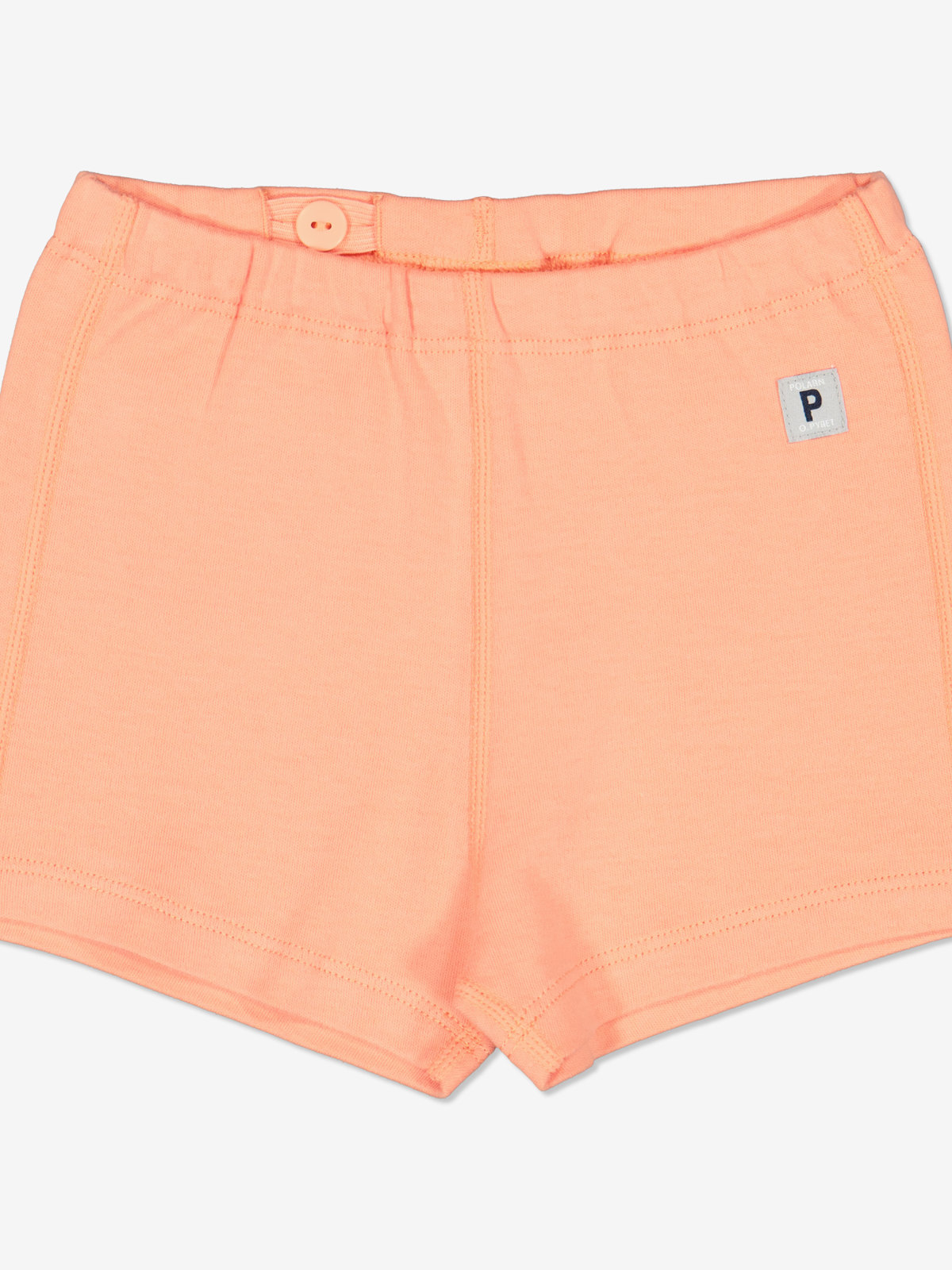 Ett par enfägade shorts i 100% ekologisk bomullstrikå, för baby. Shortsen är luftiga och sydda med extra mjuka sömmar, som ligger mjukt mot babyns kännsliga hud. Midjan är elastisk och går att justera med knapphålsresår.