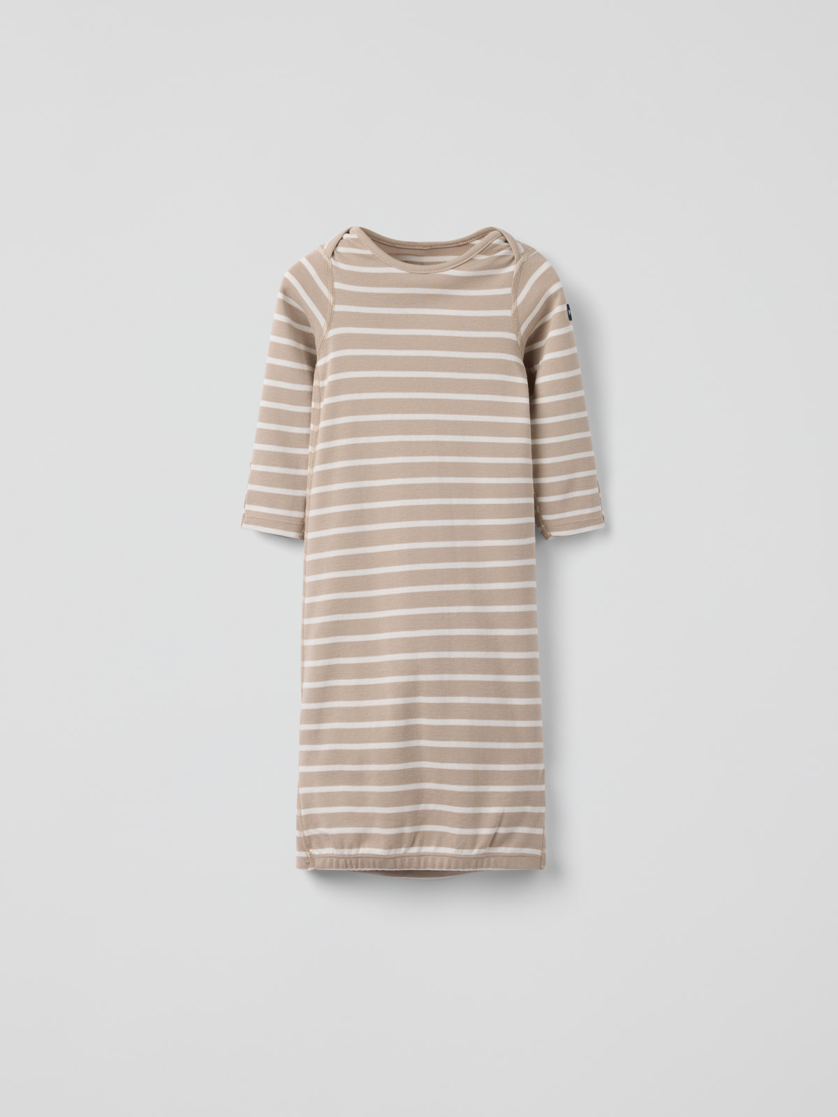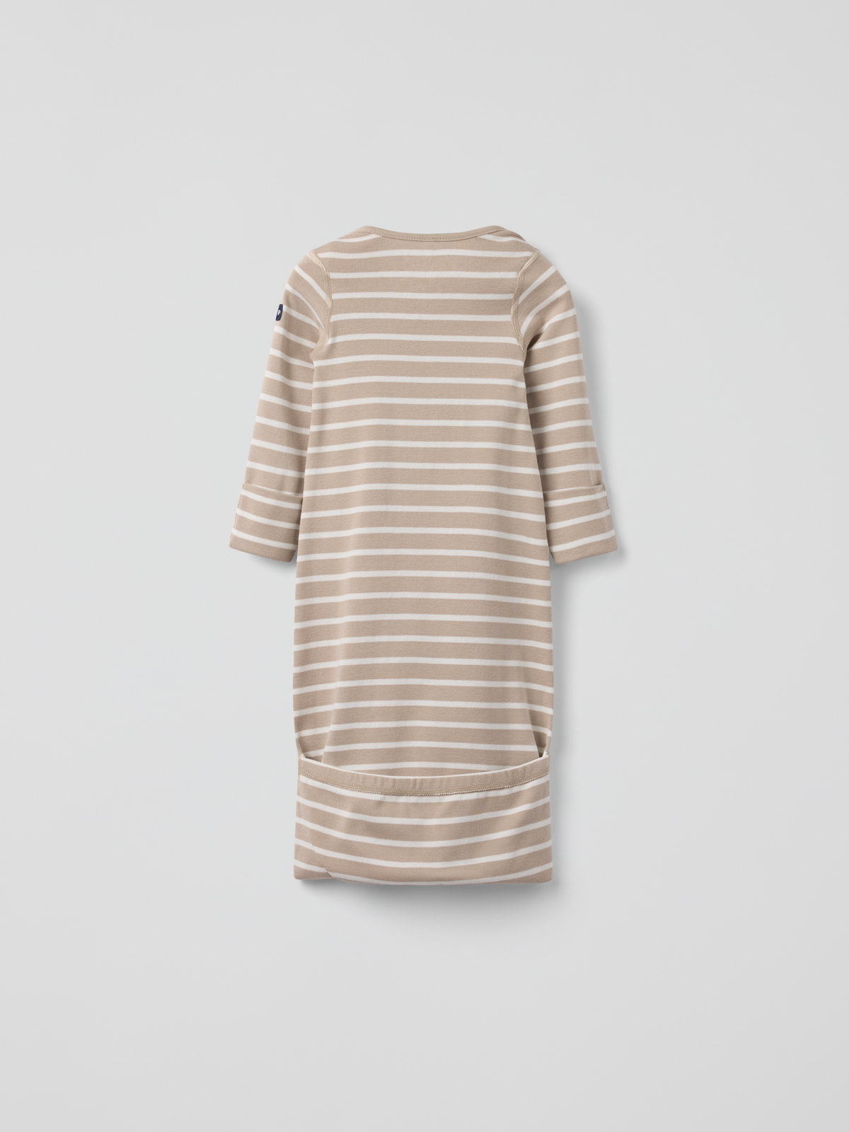 Randig sovpåse i tunn bomullstrikå – mysig både i vagn och säng! Sovpåsen är långärmad och har omlottlagda axlar för praktisk på- och avtagning. Den är sydd med extra mjuka sömmar som inte skaver mot känslig hud. Sovpåsen har elastik i nederkant.