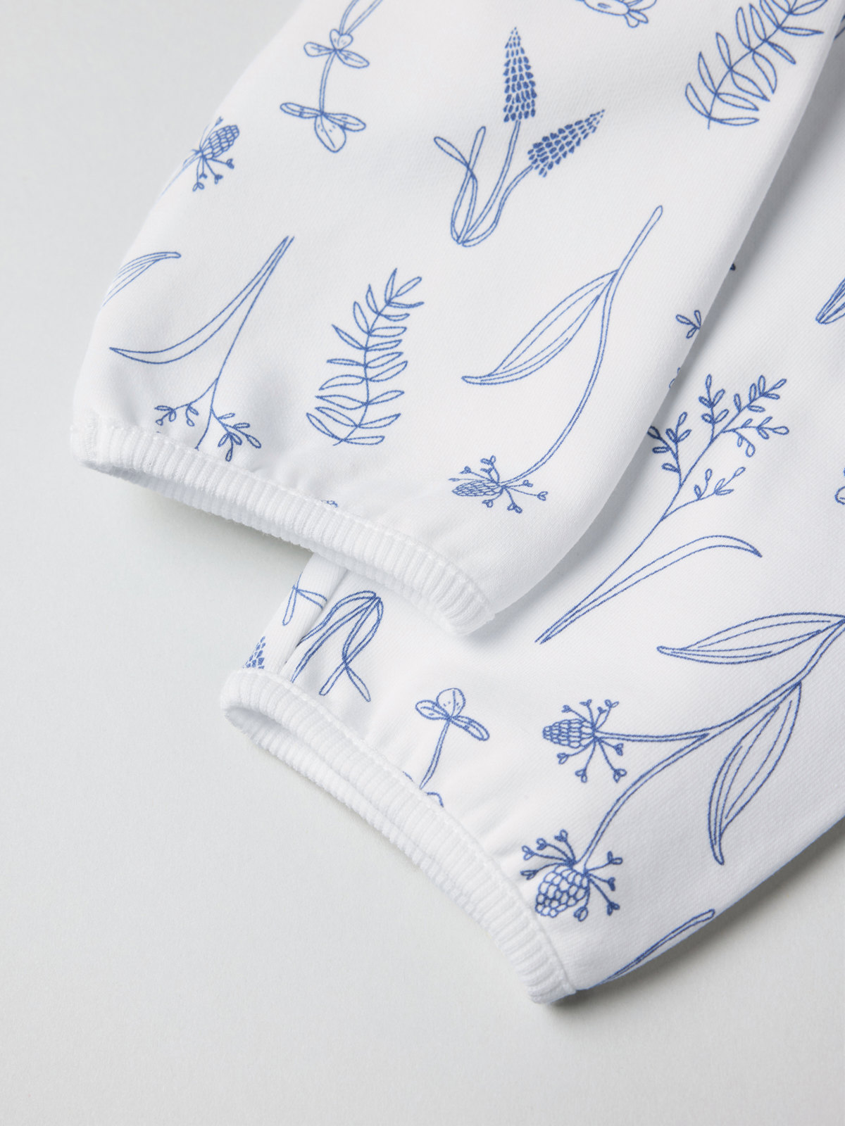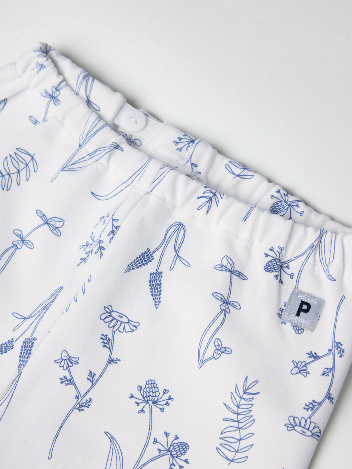 Byxa i tunn och mjuk sweatshirtkvalitet i ekologisk bomull – perfekt för varma dagar! Byxan är helmönstrad med små blommor och har två fickor fram samt elastisk midja och benslut för skön passform.