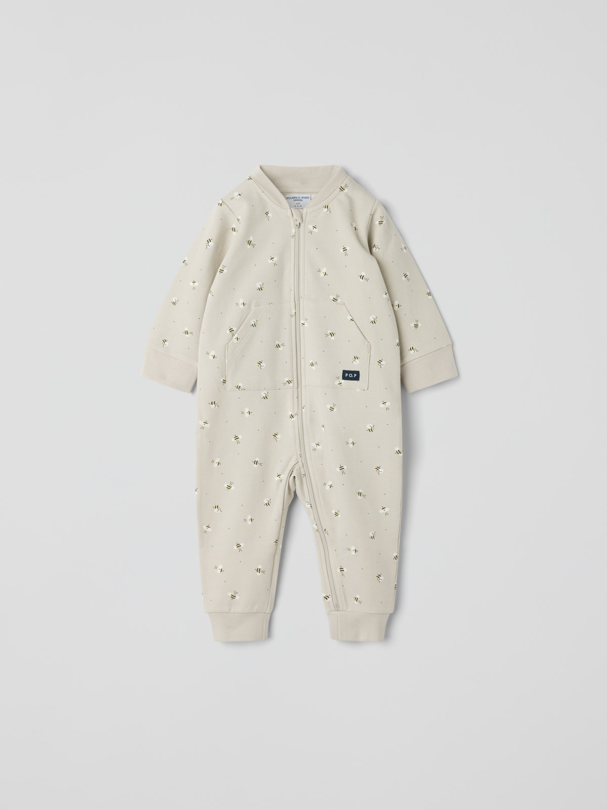 Mjuk overall i ekologisk bomull med skön sweatshirtkvalitet och borstad insida för baby. Overallen har mjuka, ribbade muddar vid ärm- och benslut för skön passform. Den långa dragkedjan från hals till benslut underlättar klädbyten, den har även ett skydd högst upp för att inte skava mot haka och kind.