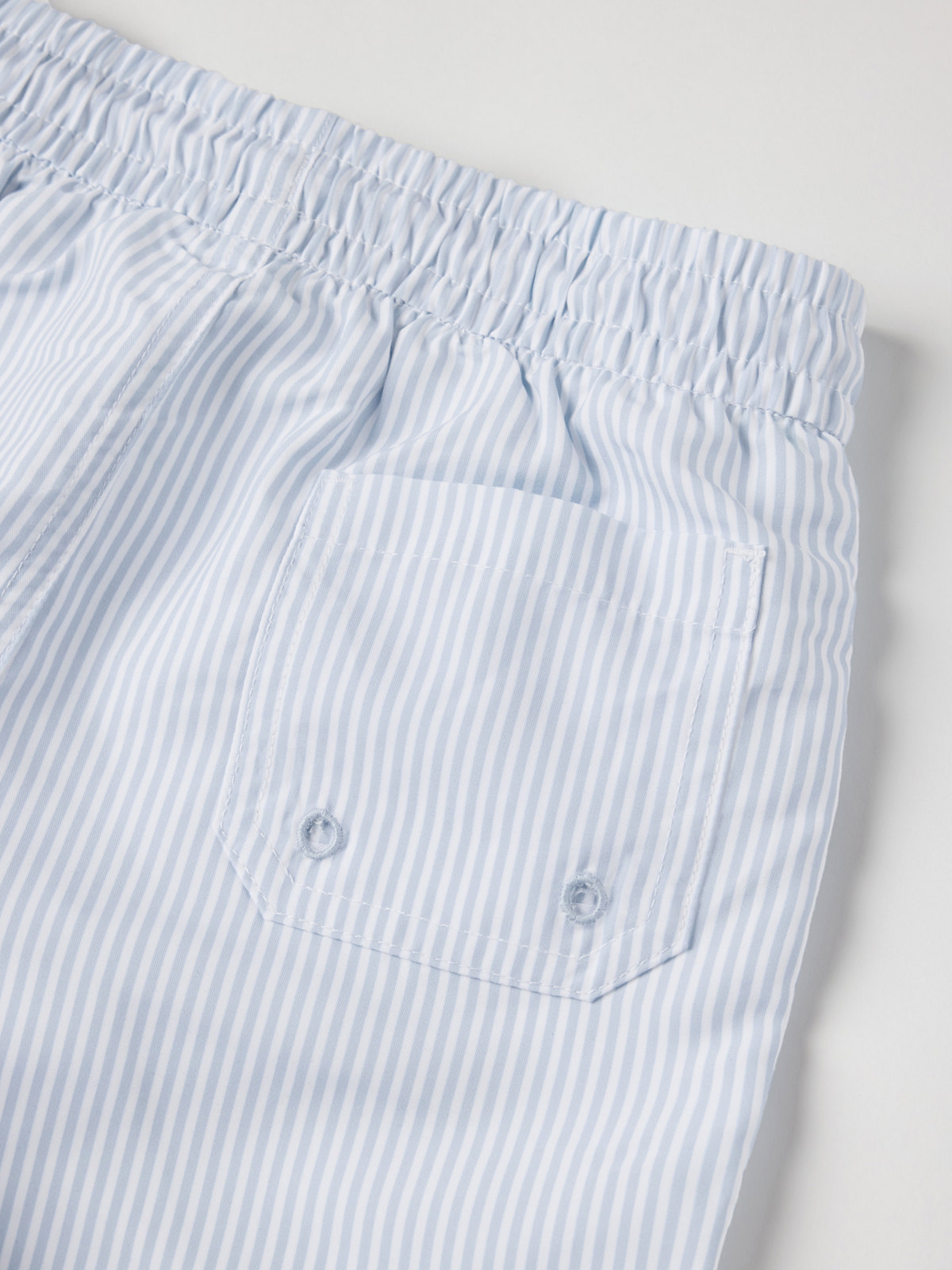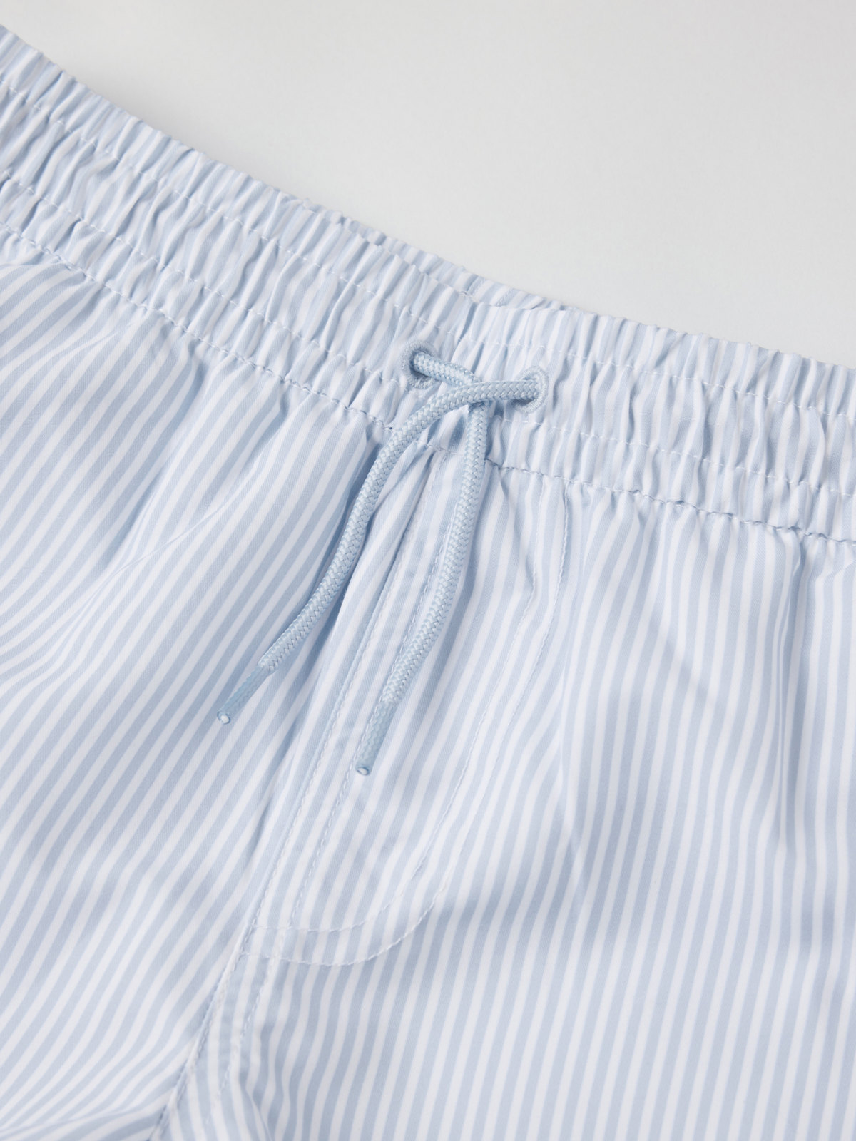 Randiga badshorts med elastisk midja och knytband. Shortsen har en innerbyxa i mjuk mesh och en ficka bak. De är tillverkade av återvunnen polyester.