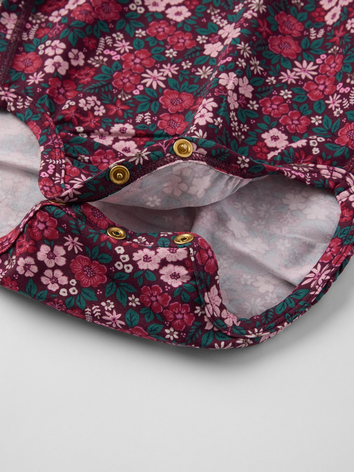 Förlängningsbar body i 100 % ekologisk bomull. Tack vare den smarta lösningen med en extra rad tryckknappar i grenen och nedvikbar mudd vid ärmsluten kan bodyn växa tillsammans med bebisen!