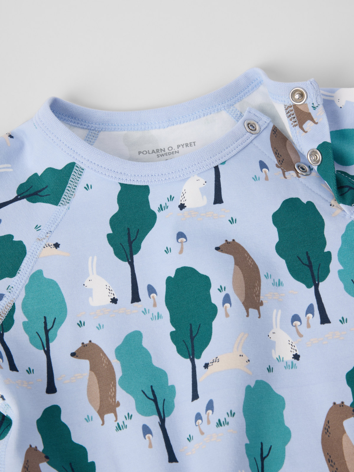 Tryckknapparna på ena axeln underlättar klädbyten.