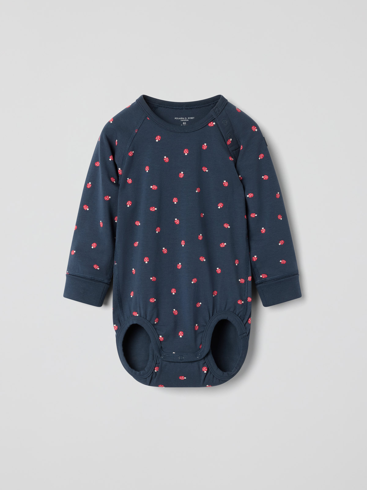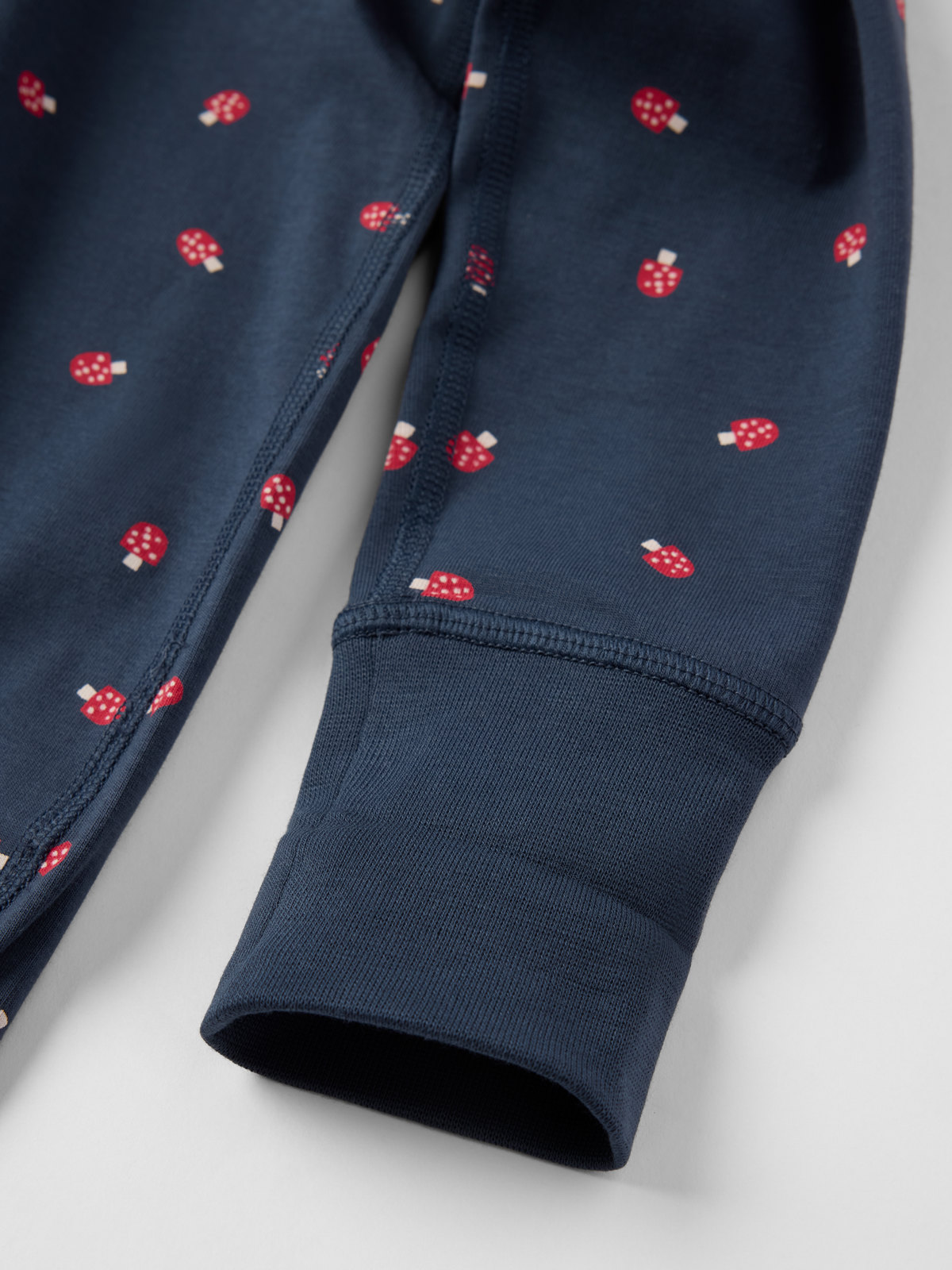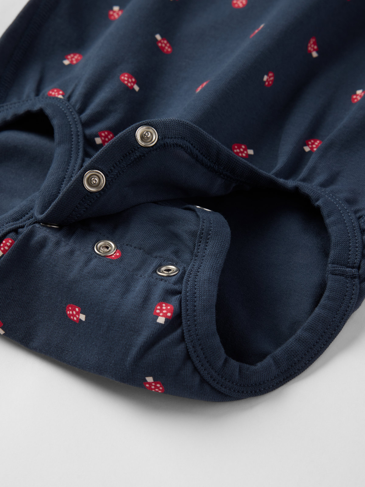 Förlängningsbar body i 100 % ekologisk bomull. Tack vare den smarta lösningen med en extra rad tryckknappar i grenen och nedvikbar mudd vid ärmsluten kan bodyn växa tillsammans med bebisen!