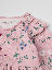En praktisk kombination av klänning och body i mjuk ekologisk bomull för baby. Klänningen är blommönstrad och prydd med fina volanger över axlarna. Tryckknappar på ena axeln och i grenen underlättar klädbyten.