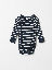 En randig omlottbody i 100% ekologisk bomull för baby. Bodyn har vår klassiska rand och mjuk ribbad mudd vid ärmsluten som går att vika ned allteftersom babyn växer. Tryckknapparna längst med omlottöppningen och i grenen underlättar kläd och blöjbyten.