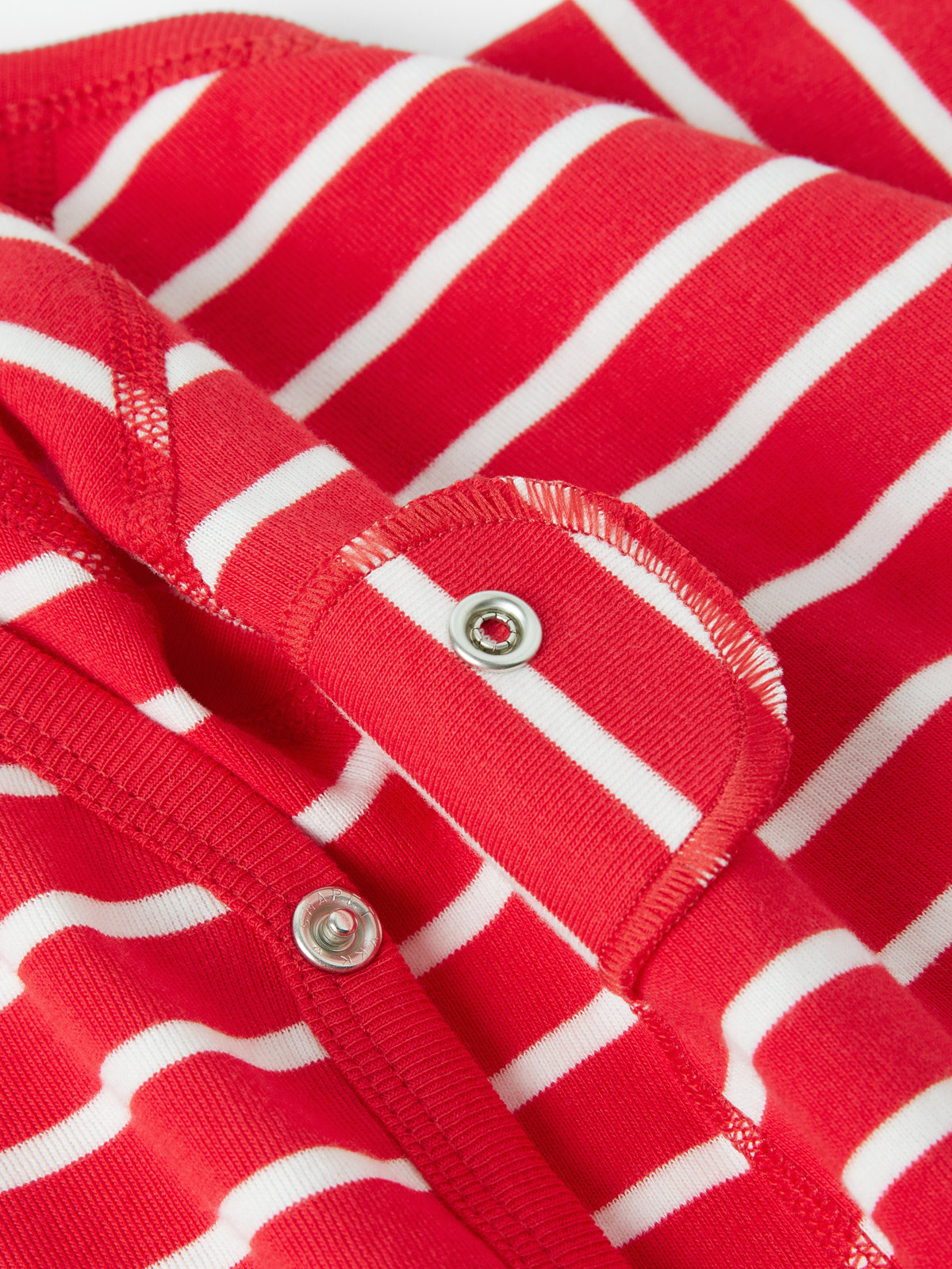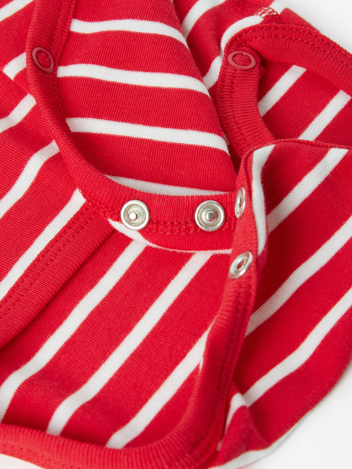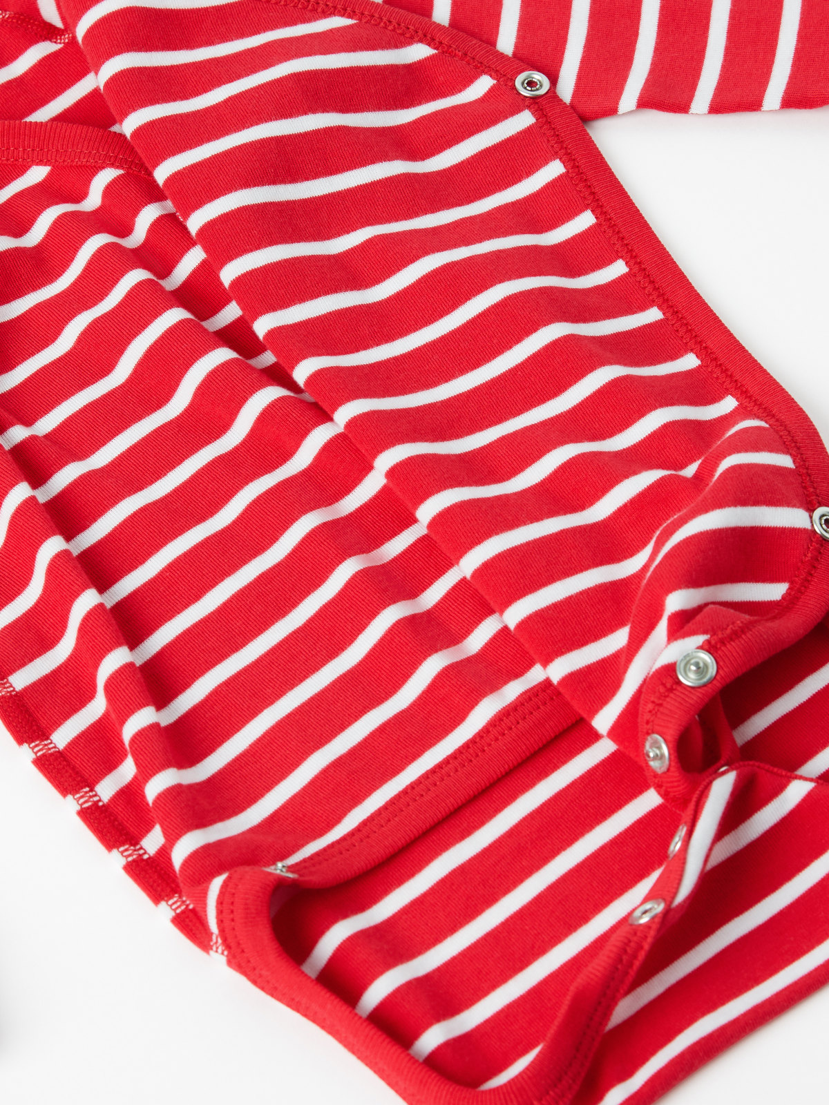 En randig omlottbody i 100% ekologisk bomull för baby. Bodyn har vår klassiska rand och mjuk ribbad mudd vid ärmsluten som går att vika ned allteftersom babyn växer. Tryckknapparna längst med omlottöppningen och i grenen underlättar kläd och blöjbyten.