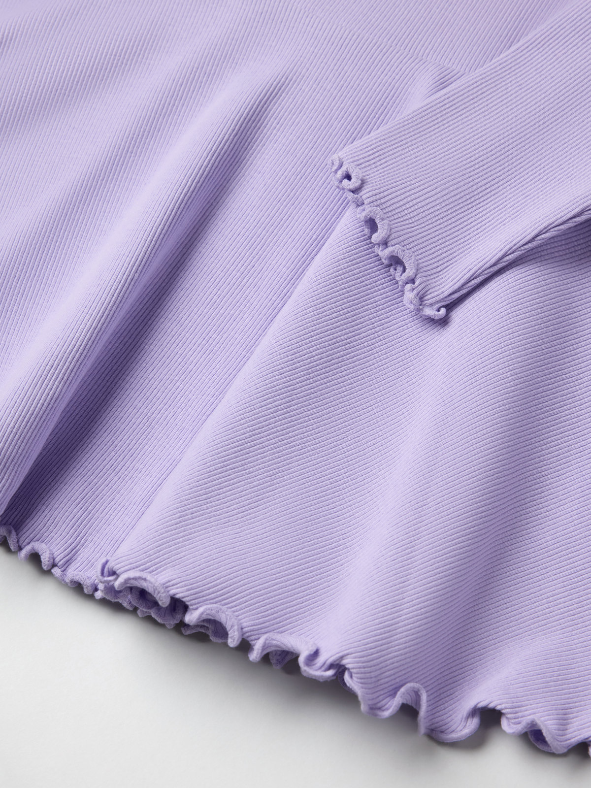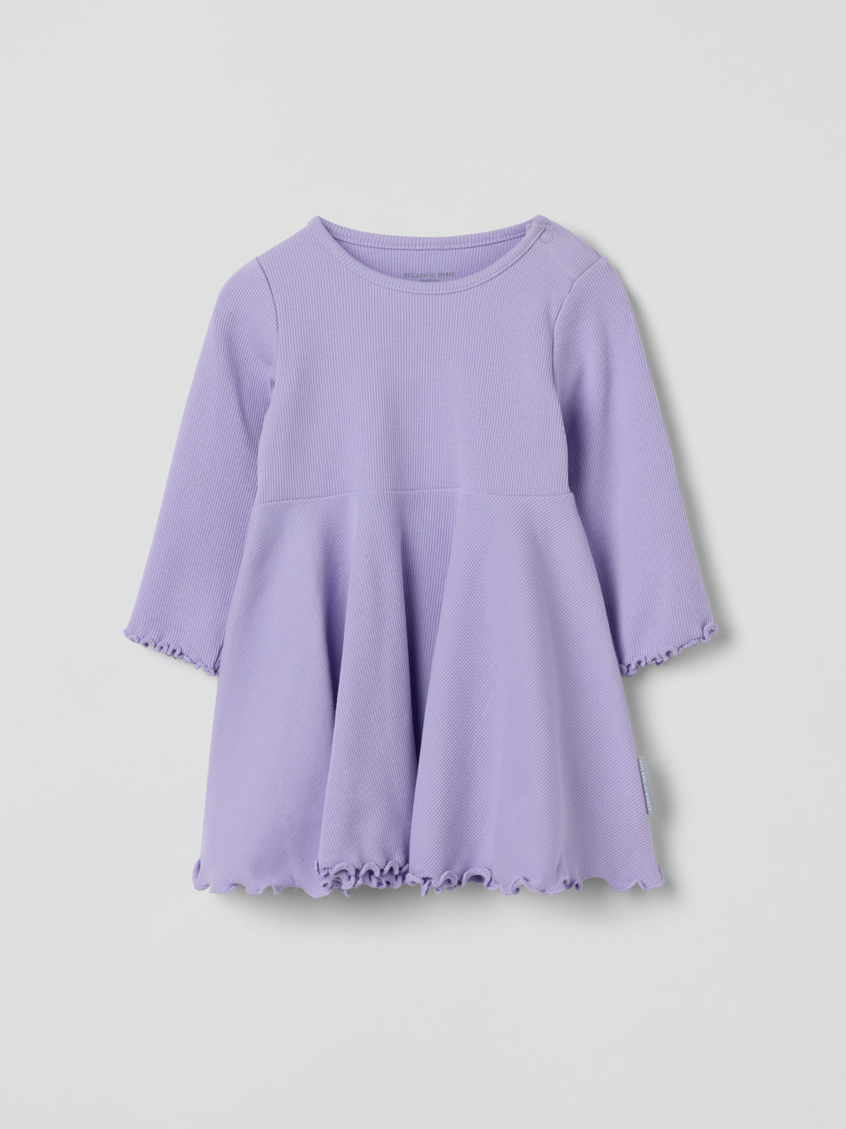 Nyhet! Nu finns vår älskade snurrklänning över för baby – ett måste i barngarderoben! Den är tillverkad i mjuk ribbad bomullstrikå och har extra vidd i kjolen. Klänningen har söt uddkant i nederkant och ärmslut.