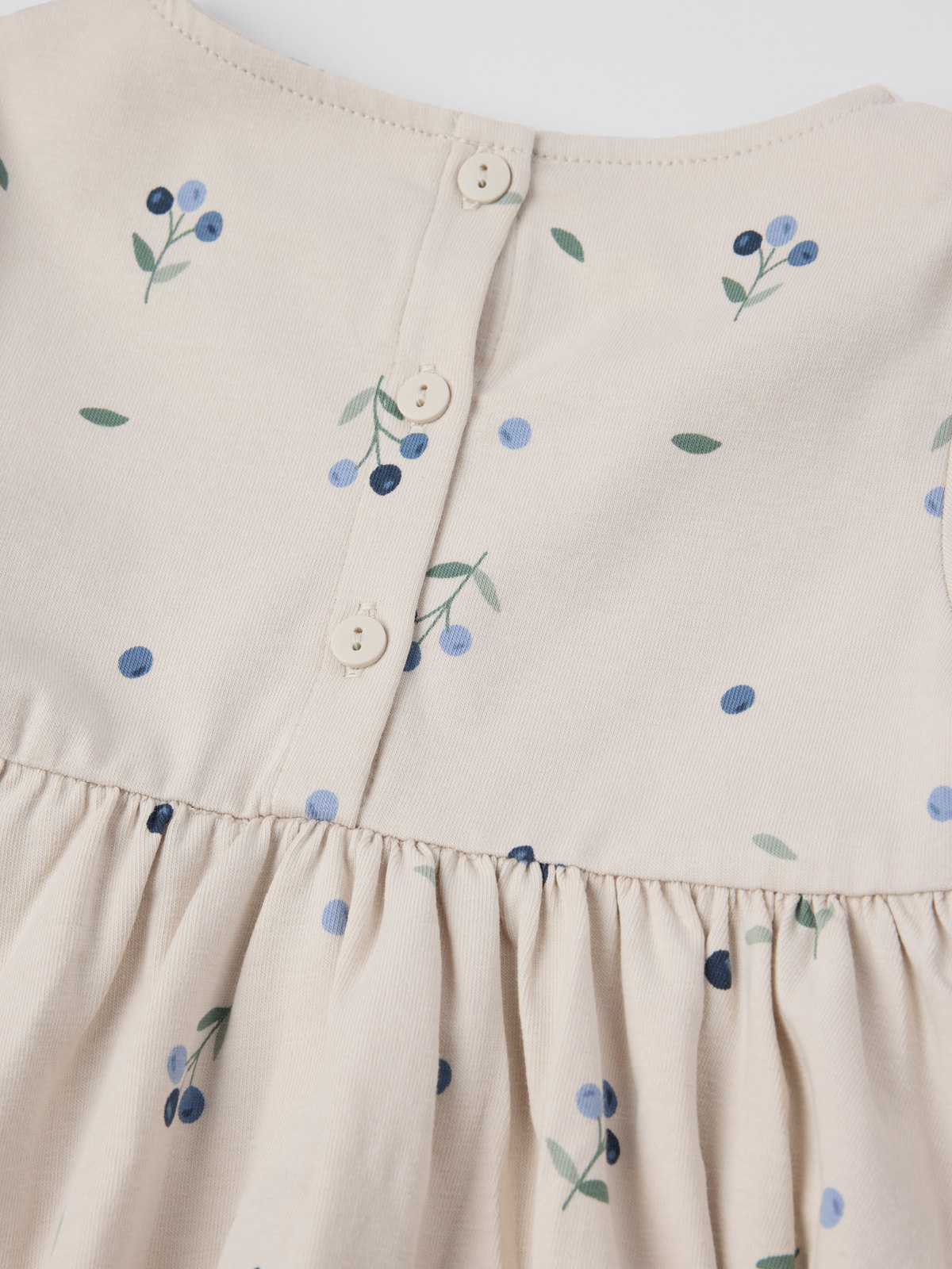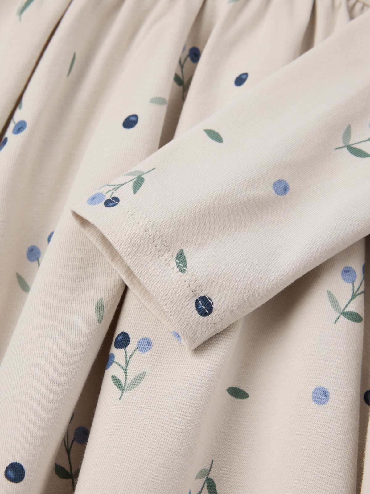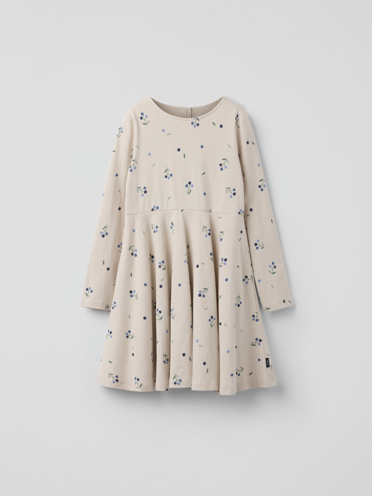I storlek 86-92 är klänningen högre skuren i midjan och har en rynkad kjoldel.