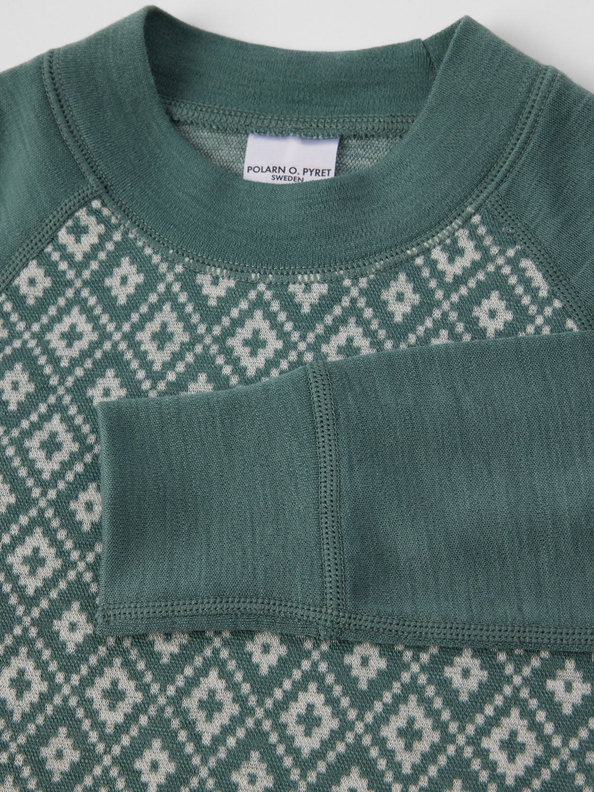 Jacquardmönstrad tröja i mjuk och värmande merinoull – perfekt som lager 1 under ytterkläder! Merinoullen håller värmen även i blött tillstånd och hjälper till att reglera kroppstemperaturen, dessutom är den oslagbart mjuk närmast huden. Matcha med tillhörande byxa för ett helt underställ under kalla dagar i skidbacken eller i snön.