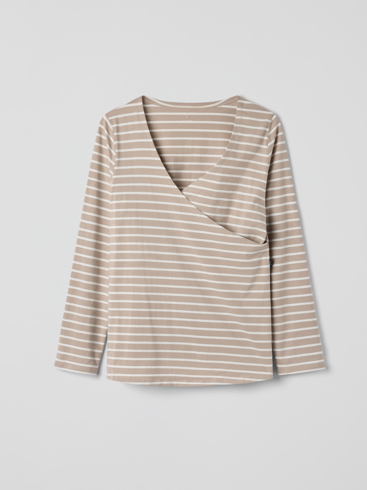 Randig amningstopp i mjuk ekologisk bomullstrikå – skön både under graviditet och tiden efter förlossning. Toppen är V-ringad som gör amningen smidig, och ett extra tyglager som gör att brösten hålls täckta. Toppen har slits i sidorna för skön passform och ligger mjukt runt magen.