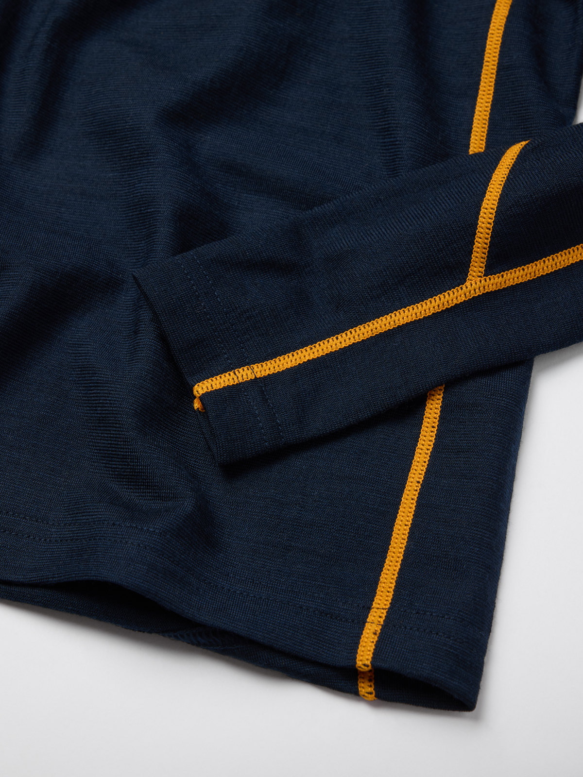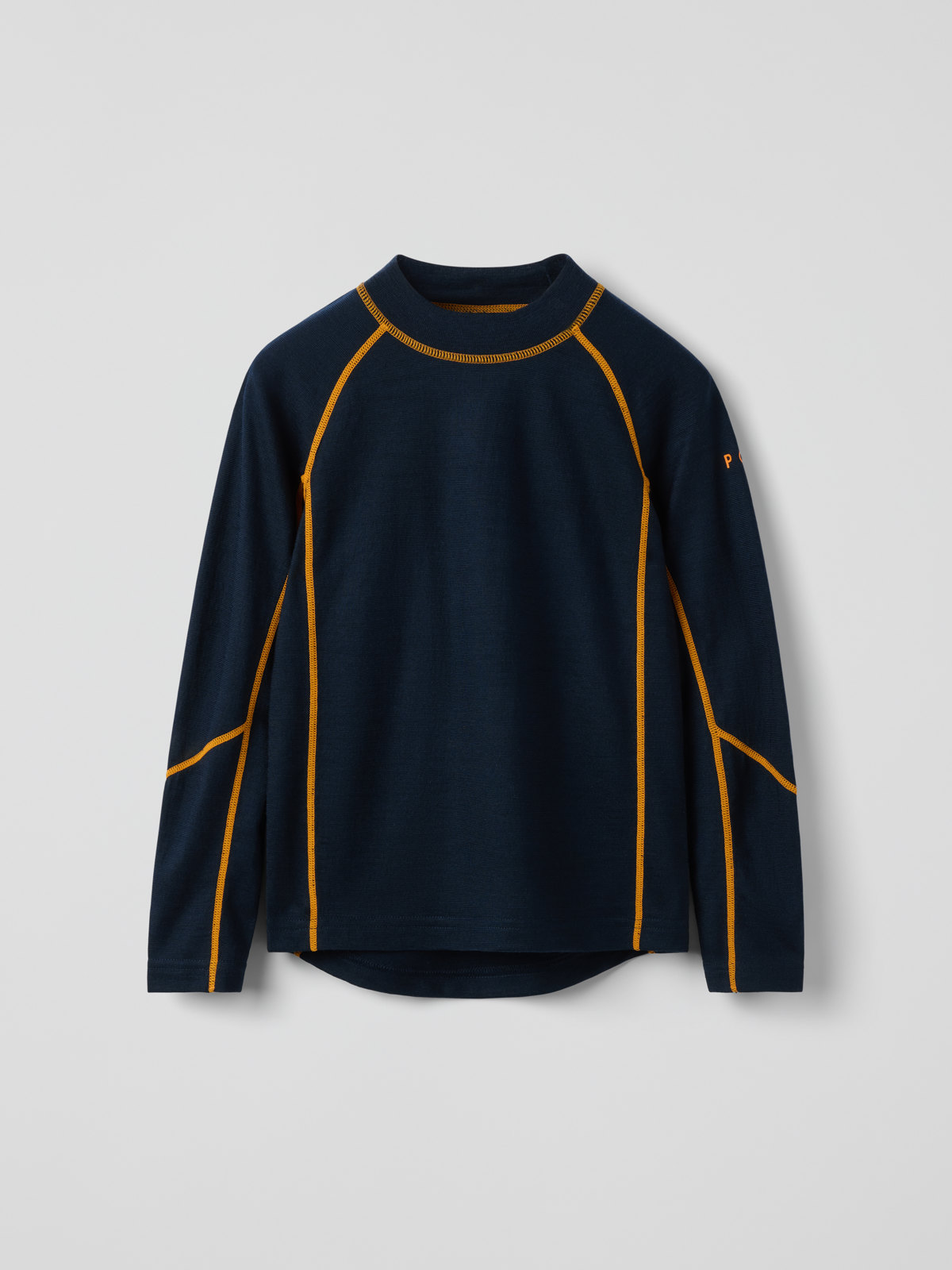 Tröja i mjuk och värmande merinoullmix med kontrastfärgade sömmar – perfekt som förstalager närmast kroppen. Merinoullen värmer även i blött tillstånd och hjälper till att reglera kroppstemperaturen. Tröjan är sydd med extra mjuka sömmar och passar perfekt tillsammans med tillhörande byxor som underställ under kalla vinterdagar.