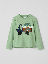 Tunn och skön tröja i mjuk ekologisk bomullstrikå – en favorit att älska länge! Tröjan har ett stort lekfullt tryck med en lastbil med broderade detaljer.