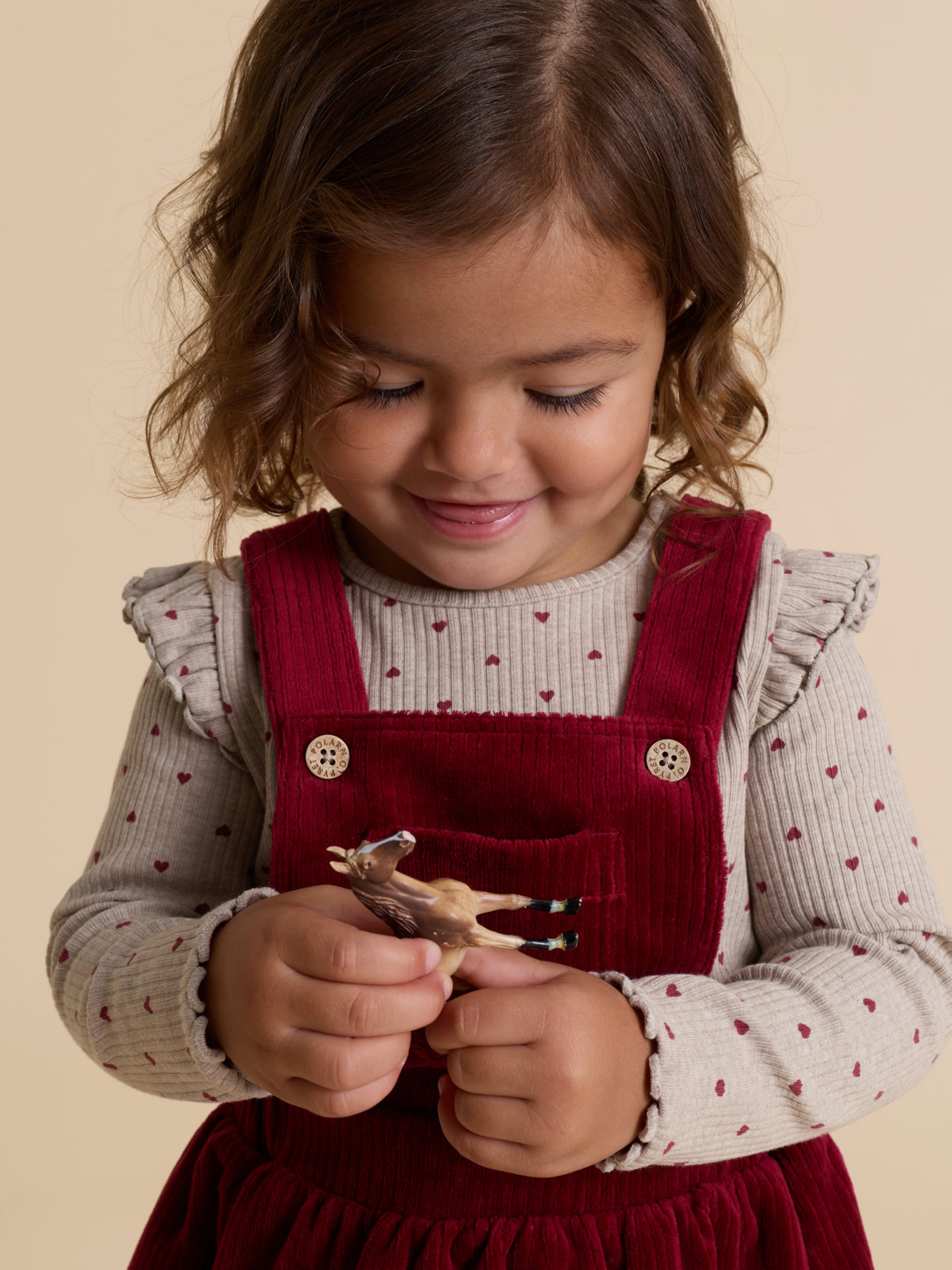 Ribbad tröja i mjuk ekologisk bomullstrikå. Perfekt både till vardag och fest! Tröjan har volanger över axlarna och fin uddkant i ärmslut och nederkant.