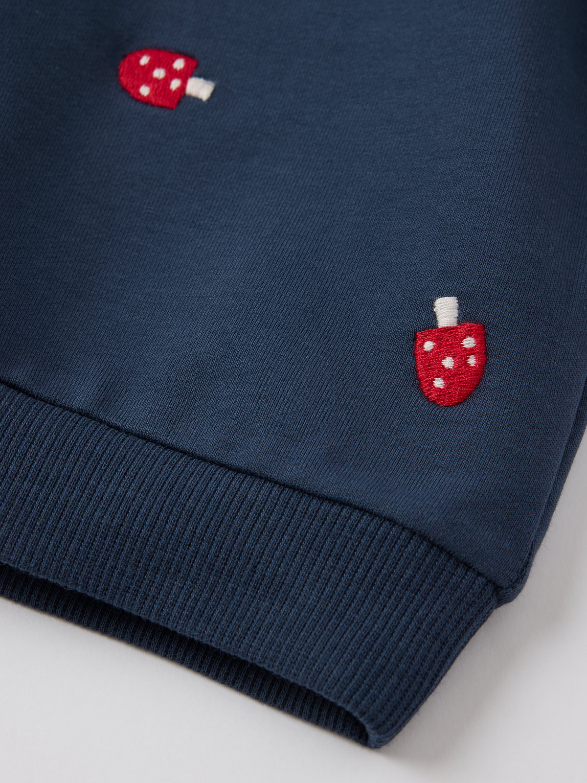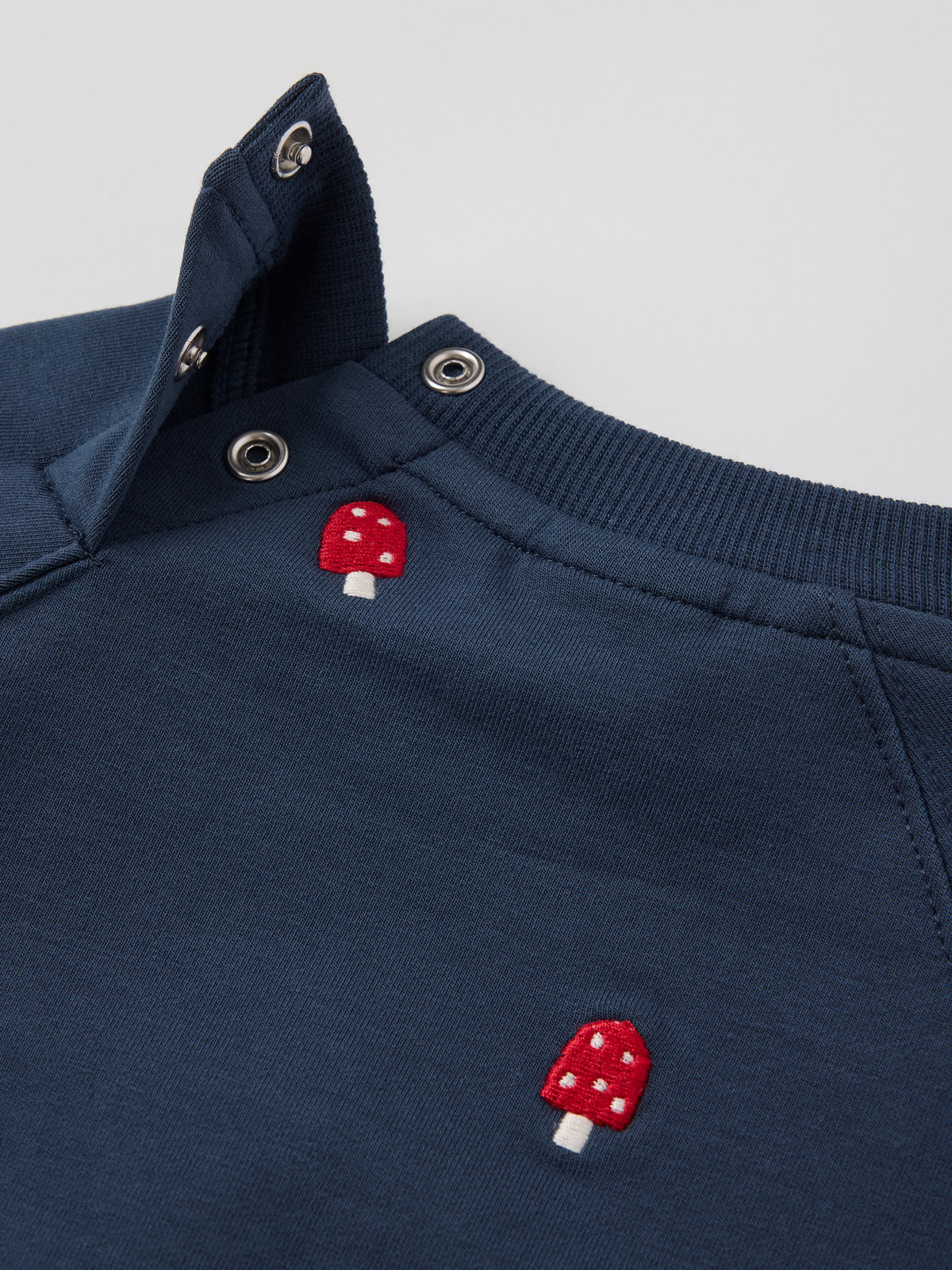 Tröja i 100 % ekologisk bomull med mjuk sweatshirtkvalitet för baby. Perfekt att ha till alla tillfällen! Tröjan har ribbad mudd i halsringning och ärmslut. Tryckknapparna bak på ena axeln underlättar klädbyten.