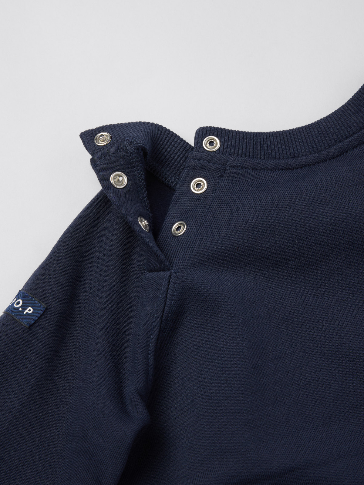Storlekarna 86-92 har tryckknappar bak på ena axeln för att underlätta klädbyten.