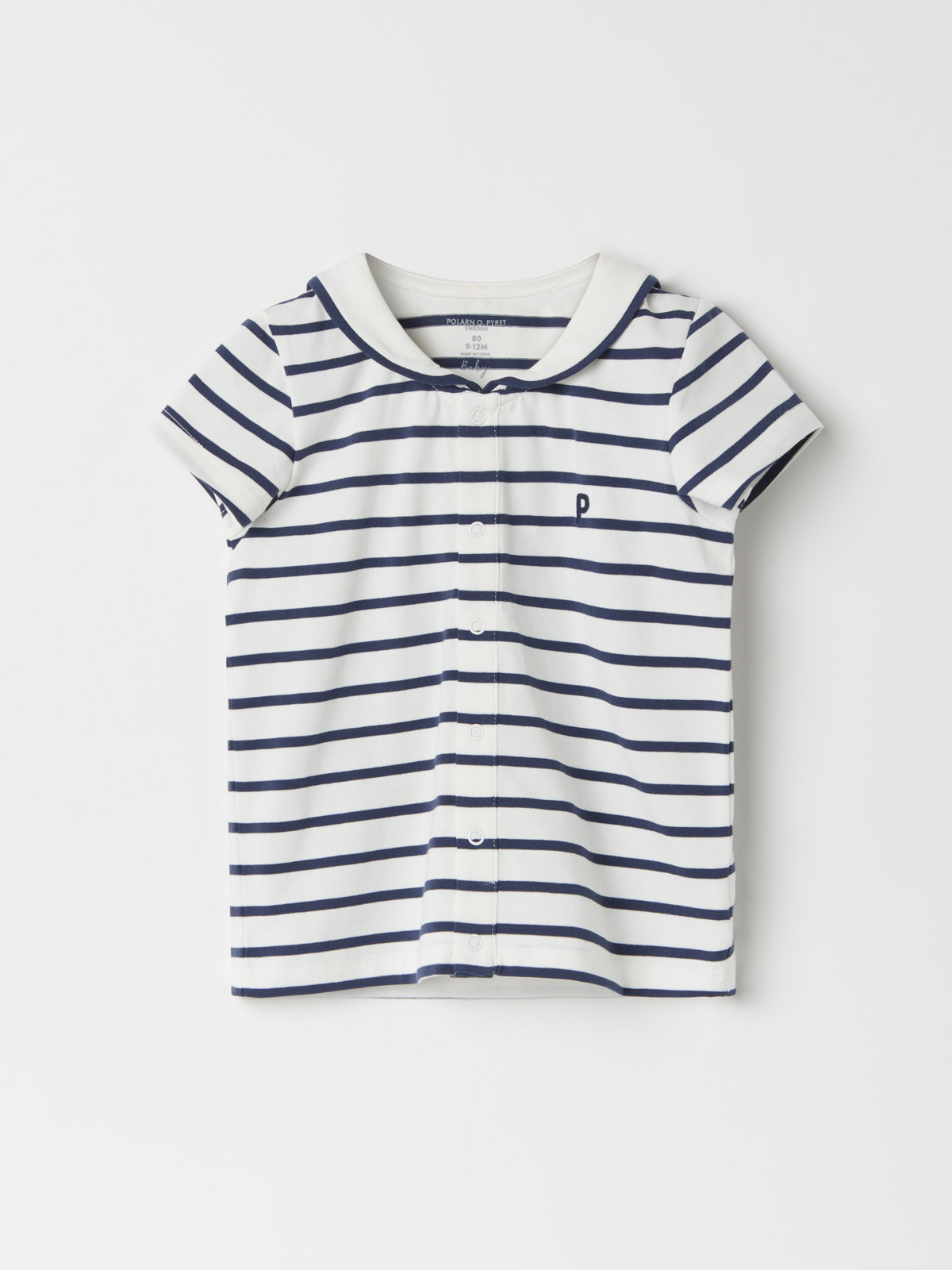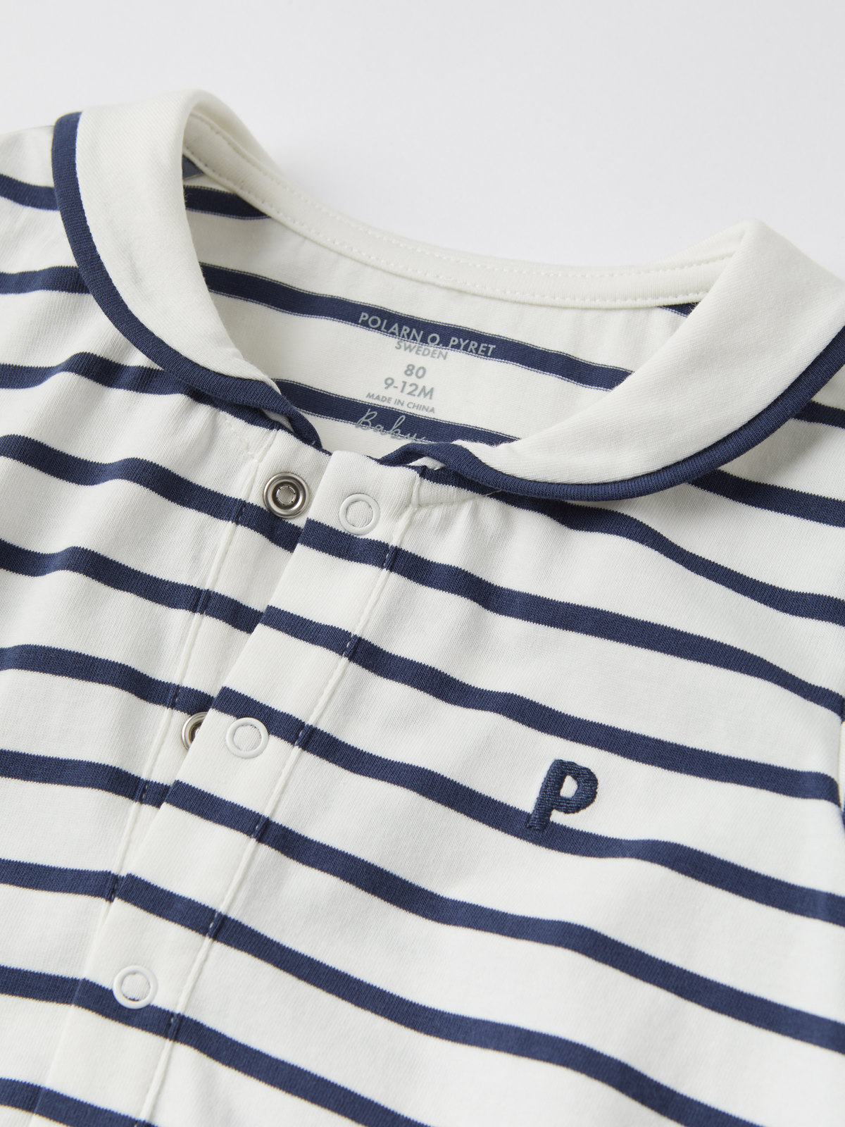 Sjömansskjorta i mjuk, ekologisk bomullstrikå för baby – fin till sommarens båtutflykter eller festligheter.