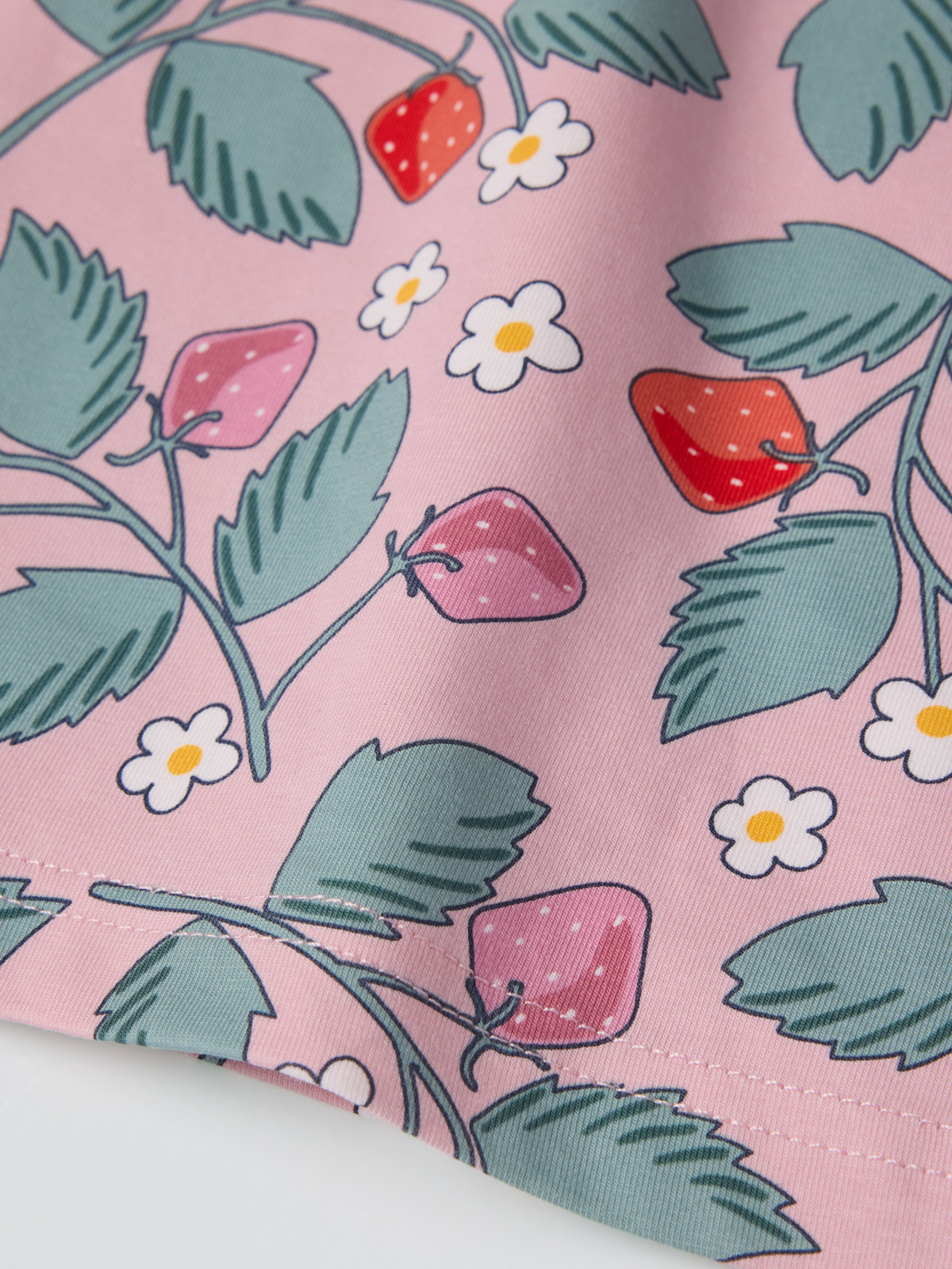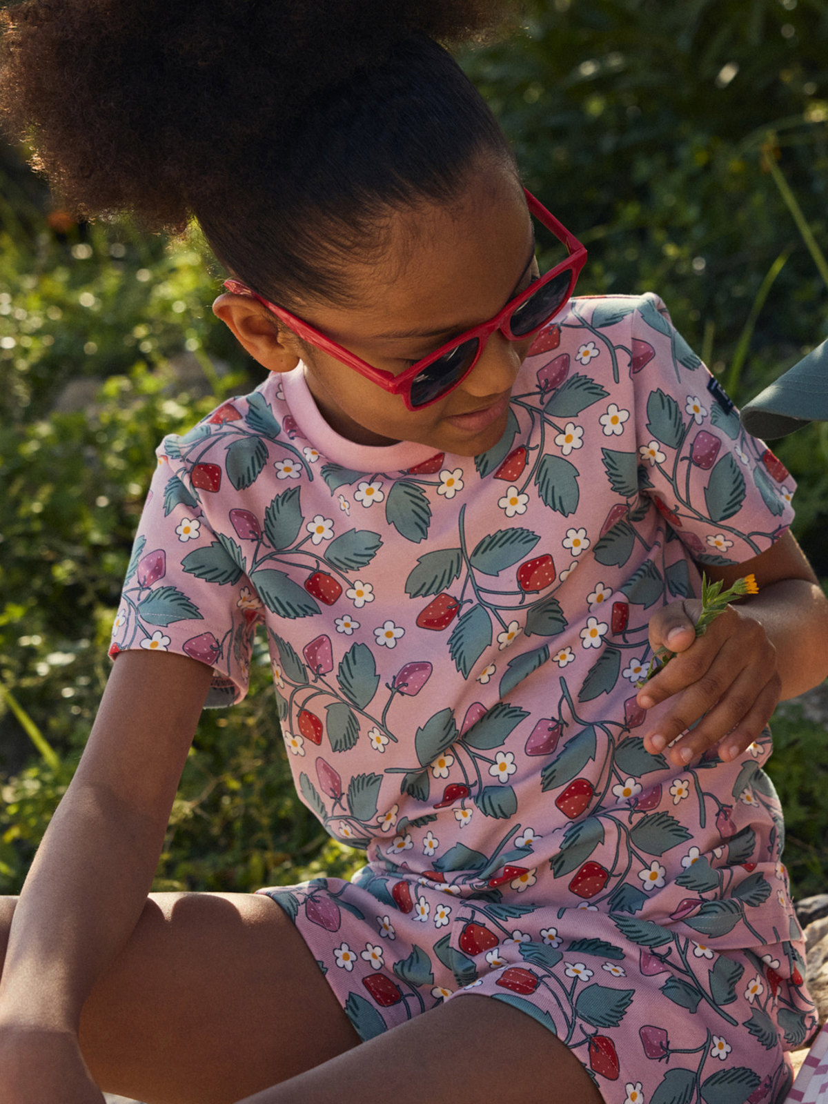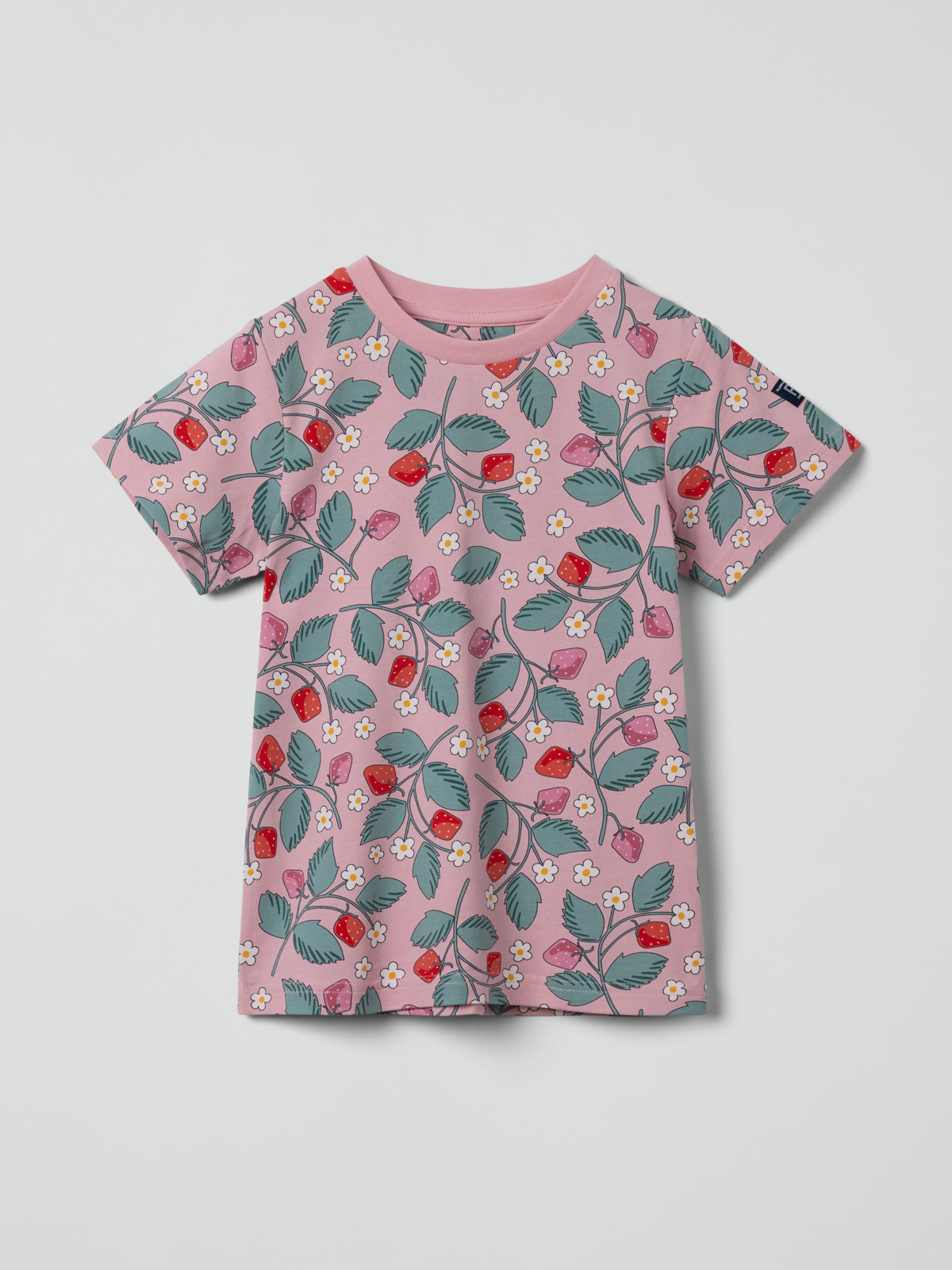 T-shirt i mjuk ekologisk bomull helmönstrad med jordgubbar – en riktigt sommarfavorit att älska länge och som passar till allt! T-shirten finns i flera färger och med olika prints som matchar fint med hela kollektionen. Hitta din favorit!