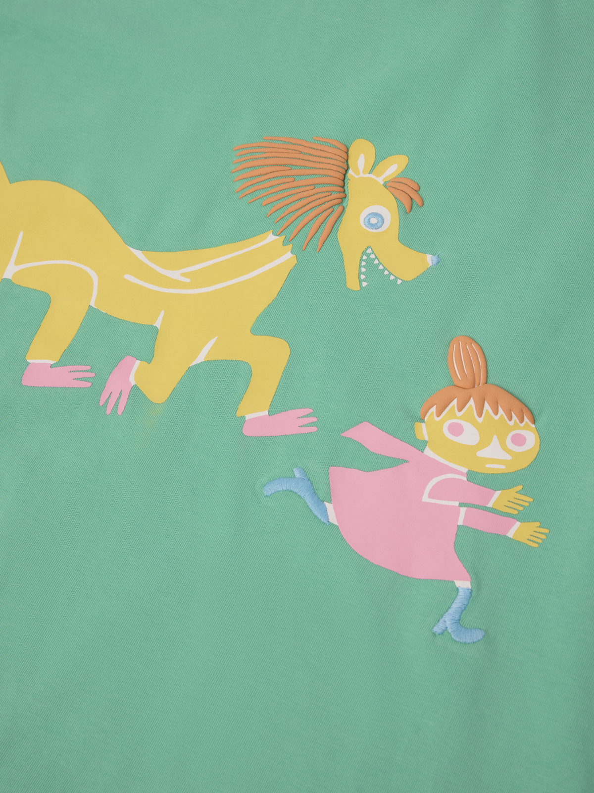T-shirt i 100 % ekologisk bomull med illustrationer från Tove Janssons berättelser om mumintrollen. Perfekt att ha vid alla tillfällen! Plagget är en del av vår limiterade kollektion för att fira Mumins 80-årsjubileum. Exklusivt för jubileumsåret 2025 är att mumintrollen återigen får synas i färg – för första gången sedan 1956.