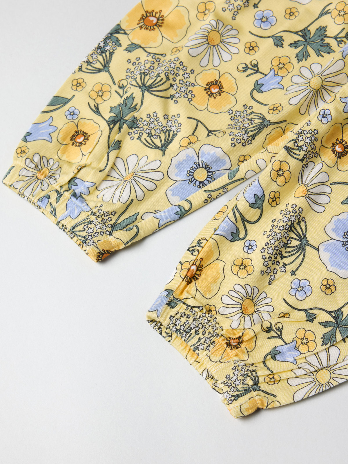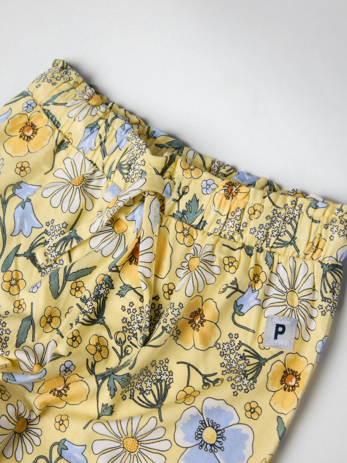 Blommig byxa tillverkad i tunn och sval trikå av Ecovero™ Viscose för baby – perfekt för varma dagar! Byxan har elastisk midja och benslut för skön passform.