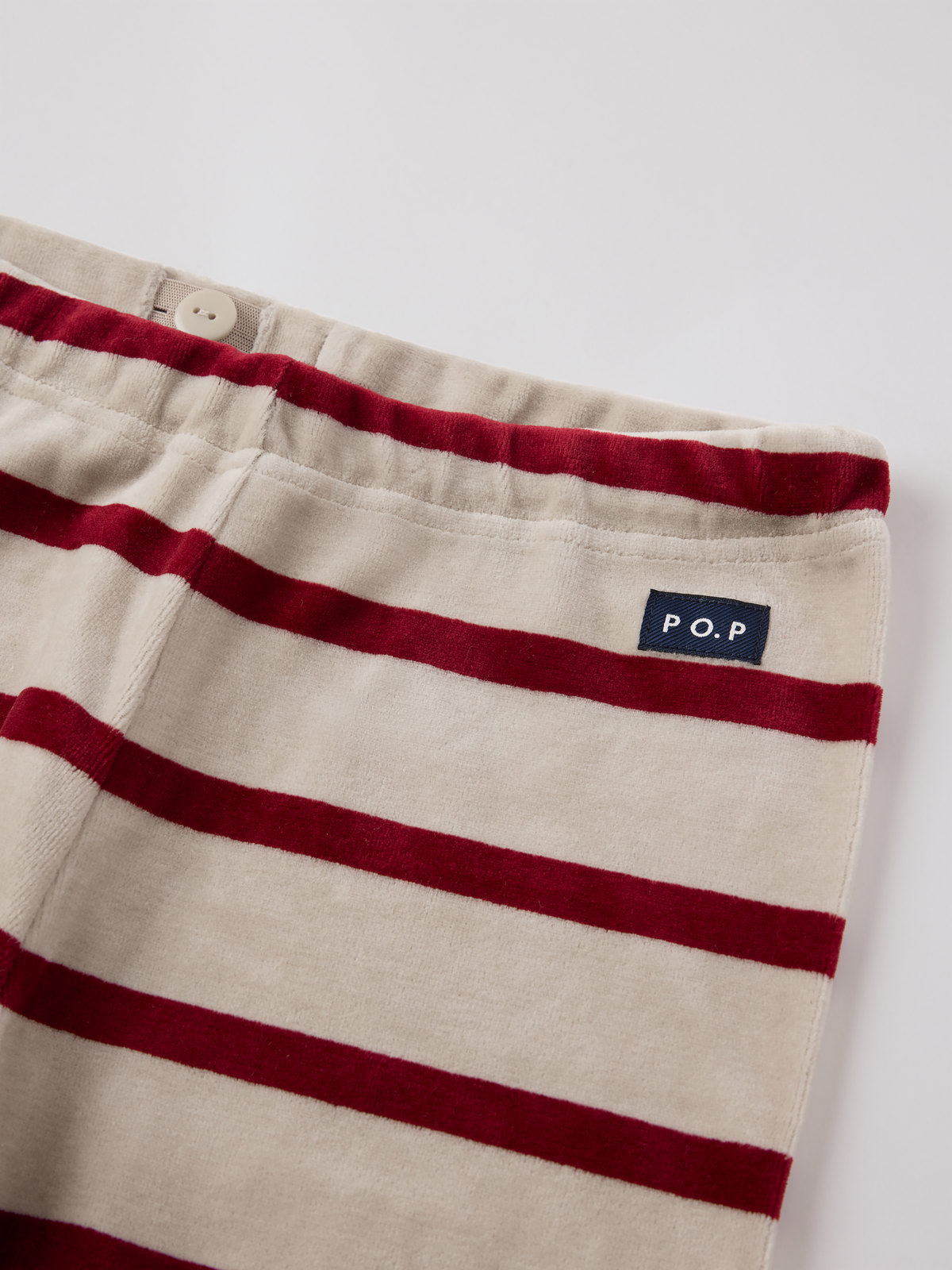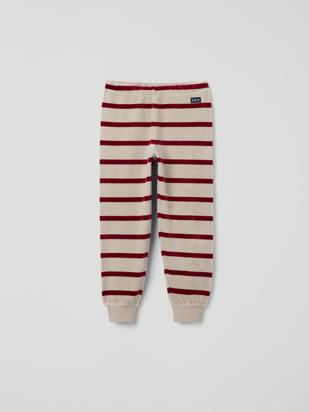 Riktigt mjuk och gosig byxa i velour tillverkad av ekologisk bomull och återvunnen polyester. En vinterfavorit att älska länge! Byxan har ribbad mudd i benslut och midjan går att justera med knapphålsresår.