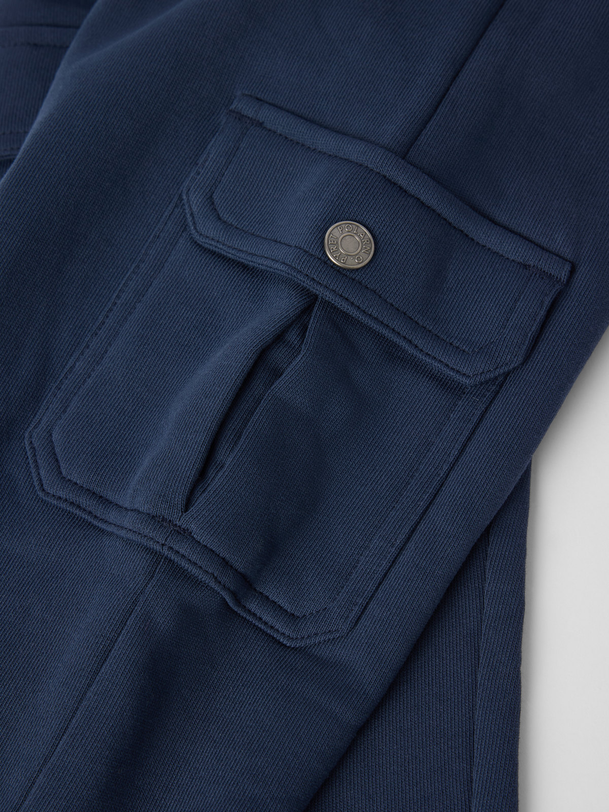Vår uppskattade mjukisbyxa i mjuk sweatshirtskvalitet, tillverkad av 100 % ekologisk bomull – i cargomodell! Mjukisbyxan har två cargofickor och midjan kan justeras med kontrastfärgat knytband. Byxan har även elastisk ribbad mudd i midjan och vid benslut för skön passform.