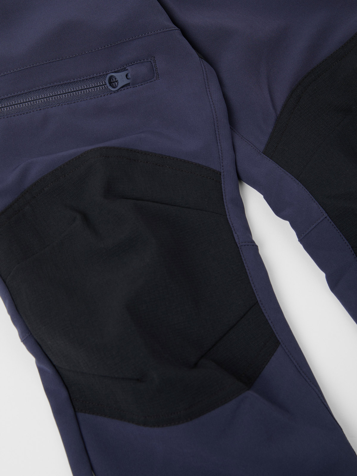 Byxan har ett kraftigare tyg som förstärker knän och säte vilket gör att den tål aktiviteter på tuffa underlag.