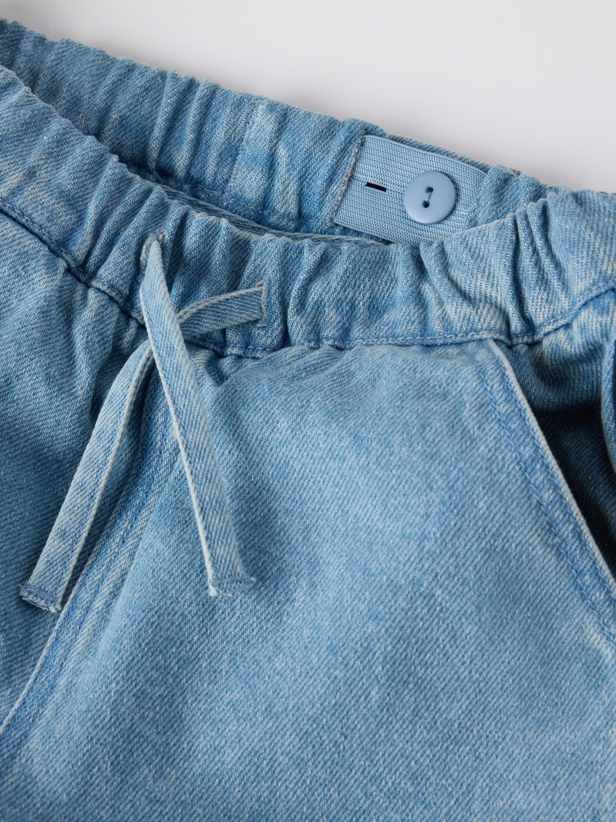 Jeansshorts i tunn och följsam denim av ekologisk bomull – självklara sommarfavoriter i alla barns garderob! Lekvänlig passform med stora fickor och elastisk midja som kan justeras med knapphålsresår och knytband.