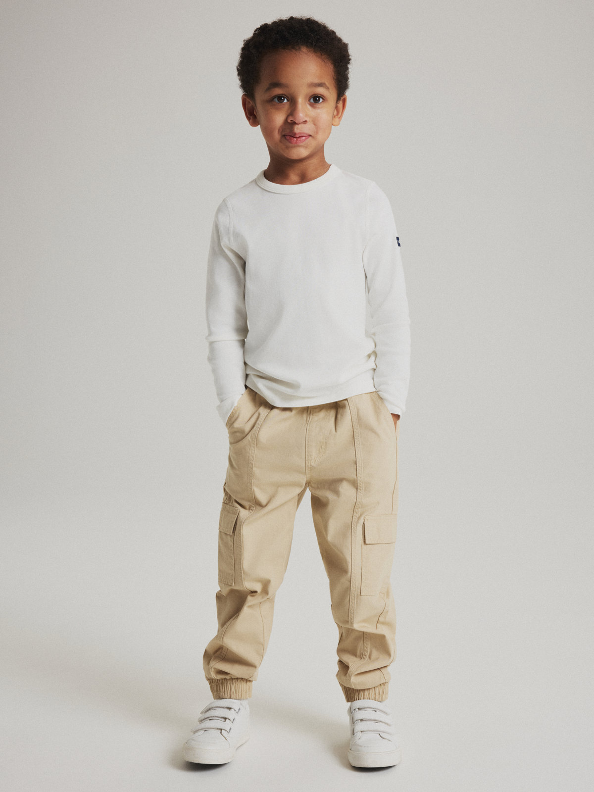 Våra nya jeans PARKER tillverkade i stretchig denim med cargomodell. En lekvänlig och praktisk byxa med resår i midja och benslut för skön passform. Midjan går också att justera med knytband. Alla våra jeans är från våren 2022 tillverkade i GOTS-certifierad bomull.