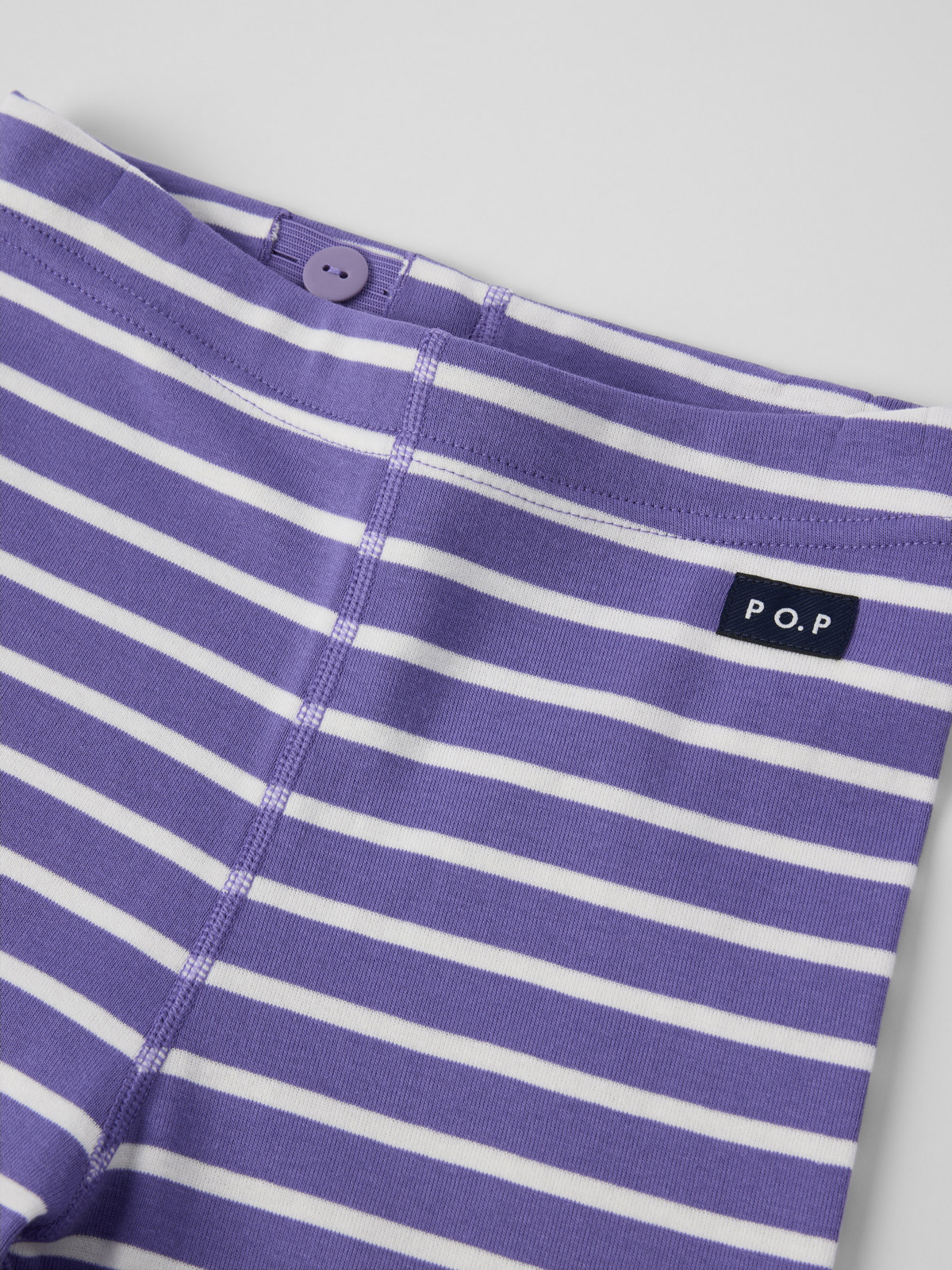 Trikåbyxa i mjuk ekologisk bomull för baby. Ett perfekt basplagg som passar både hemma och på förskolan! Byxan har vår klassiska rand och elastisk midja som går att justera med knapphålsresår. Den har även mjuk mudd vid bensluten.