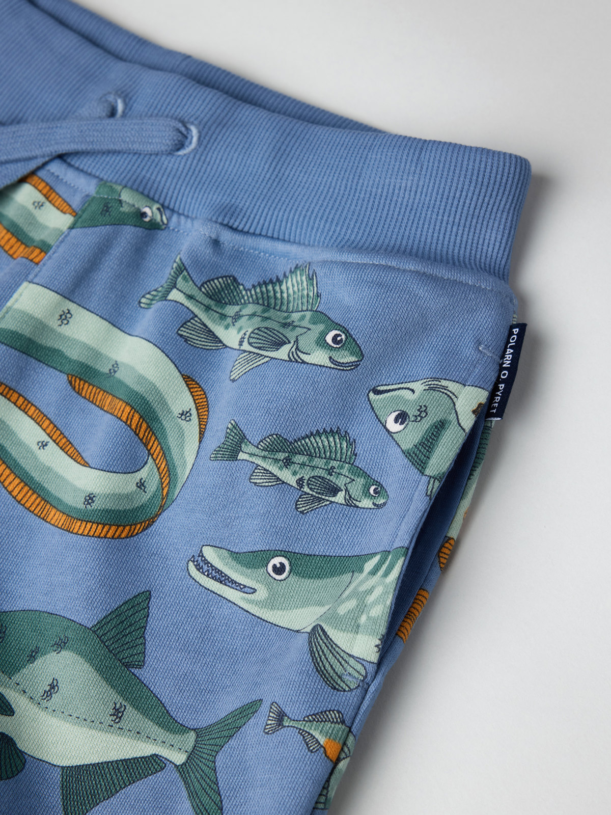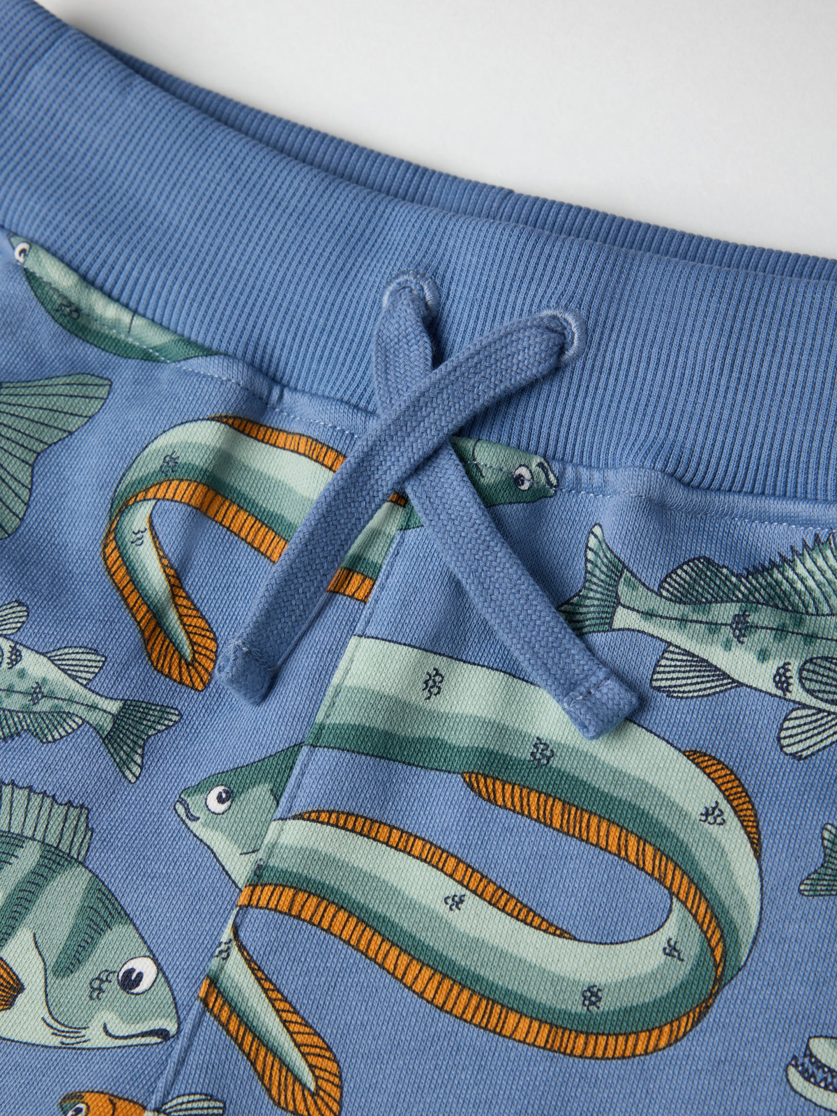 Shorts med mjuk sweatshirtkvalitet i 100 % ekologisk bomull – ett perfekt vardagsplagg i sommargarderoben! Shortsen är helmönstrade med fiskar och slutar vid knäna. Midjan är elastisk och justeras med knytband.