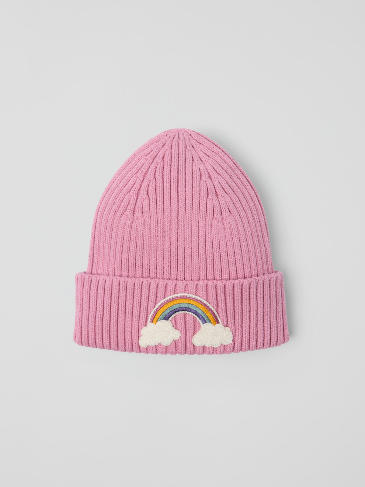 Ribbstickad mössa i ekologisk bomull – perfekt för småkyliga höst- och vårdagar. Mössan har ett uppvik i nederkant och en broderad applikation fram.