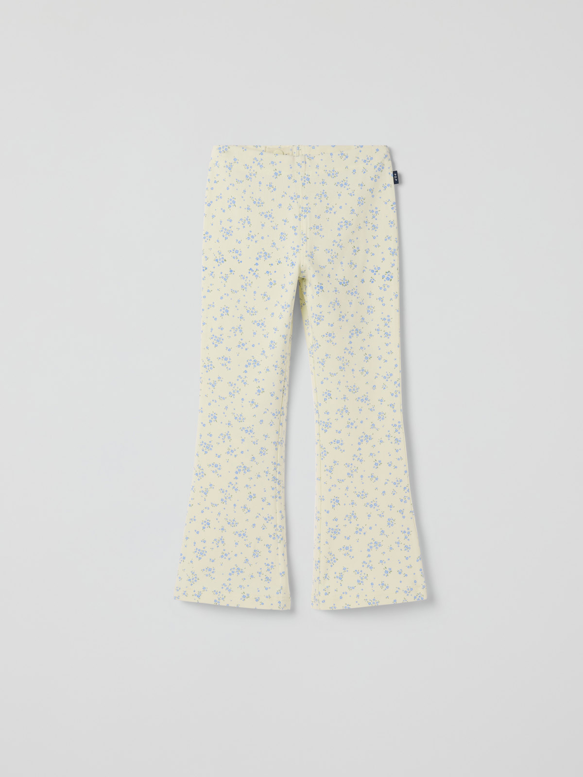Våra klassiska leggings i mjuk ekologisk bomullstrikå – med utsvängda ben! Följsamma vardagsfavoriter med justerbar midja.