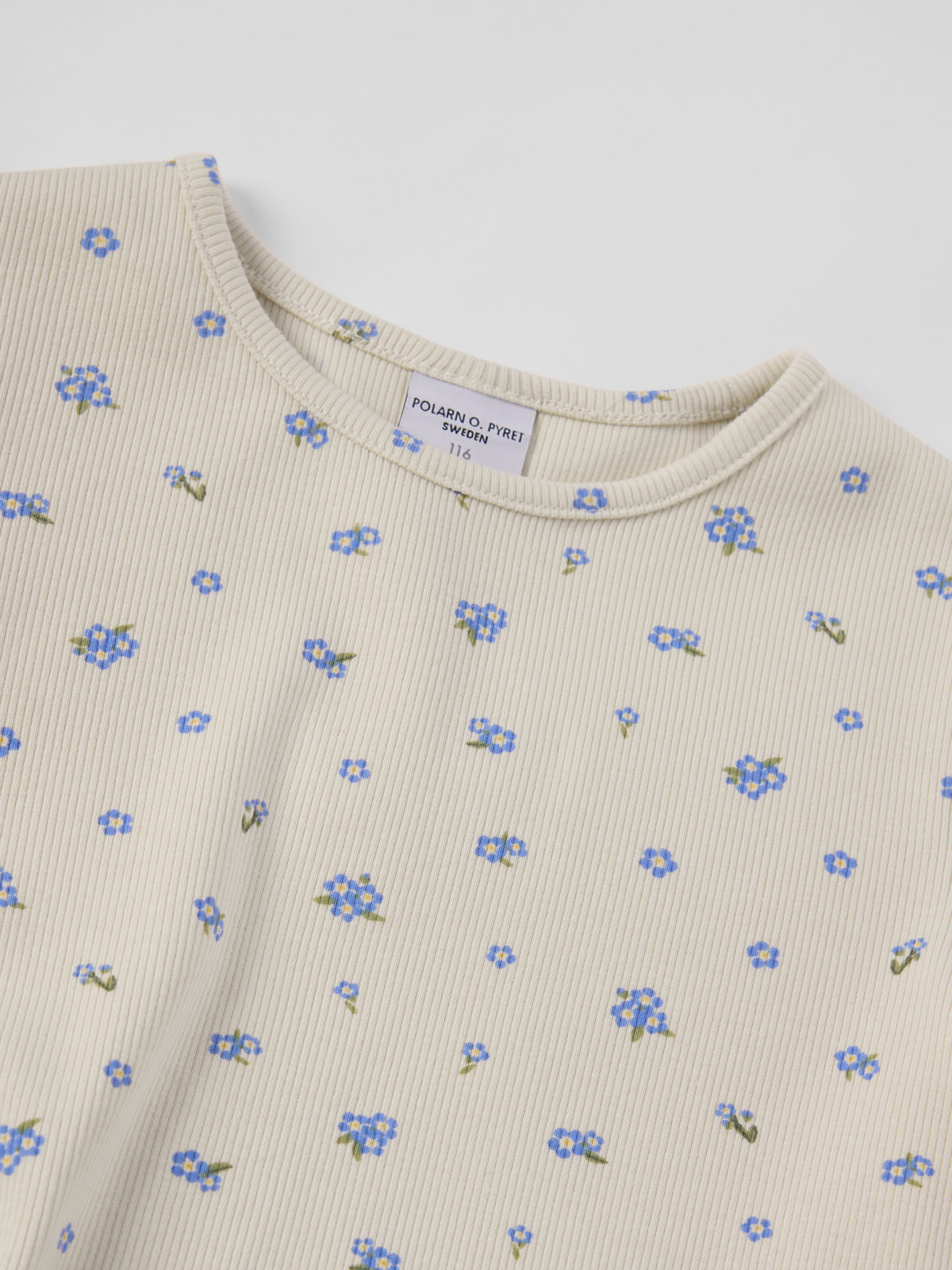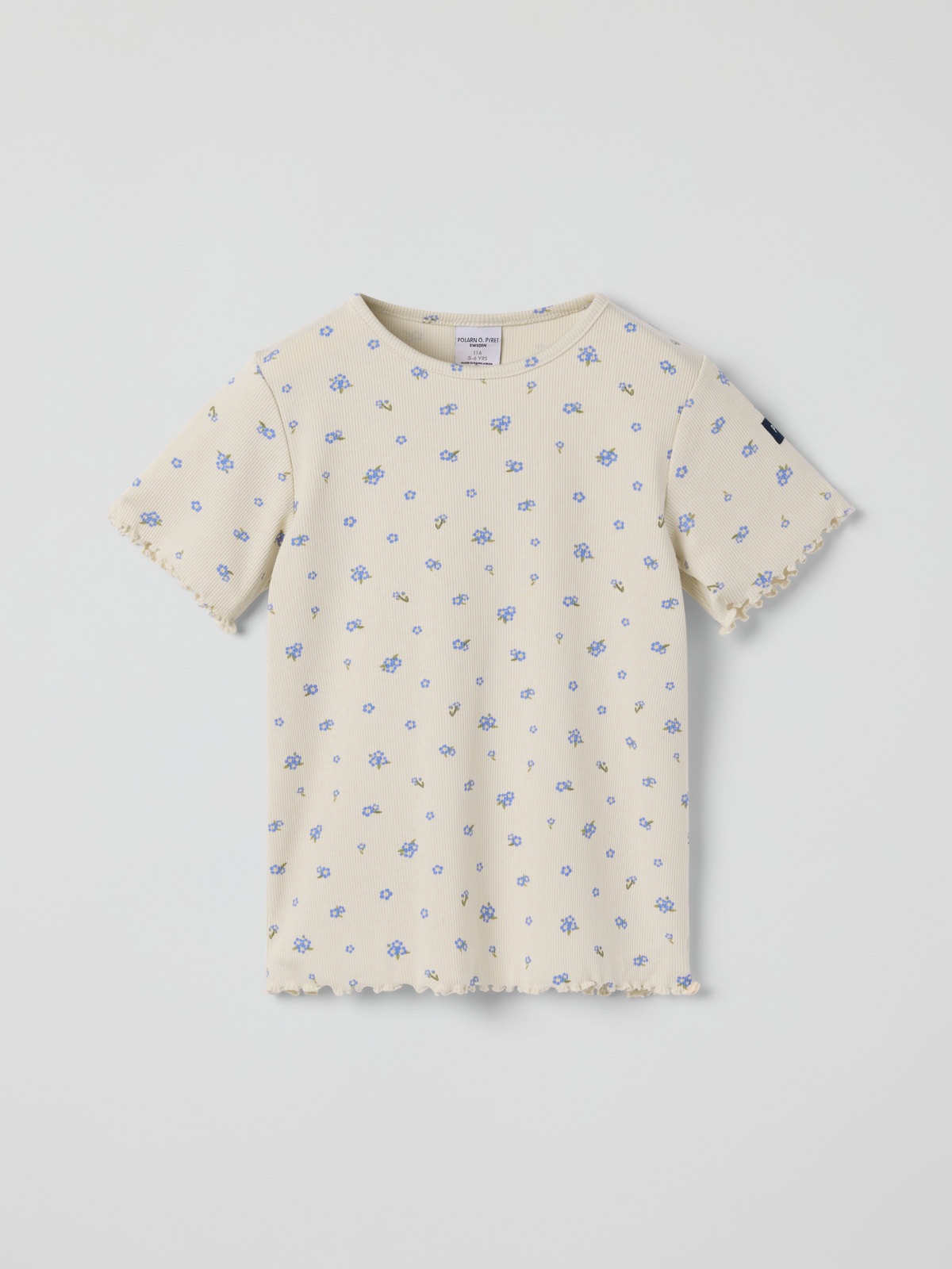 Ribbad t-shirt i mjuk mix av Tencel™ lyocell och ekologisk bomull. Materialmixen är sval, skön och skonsam mot känslig hud. T:shirten har söt uddkant i ärmslut och i nederkant.