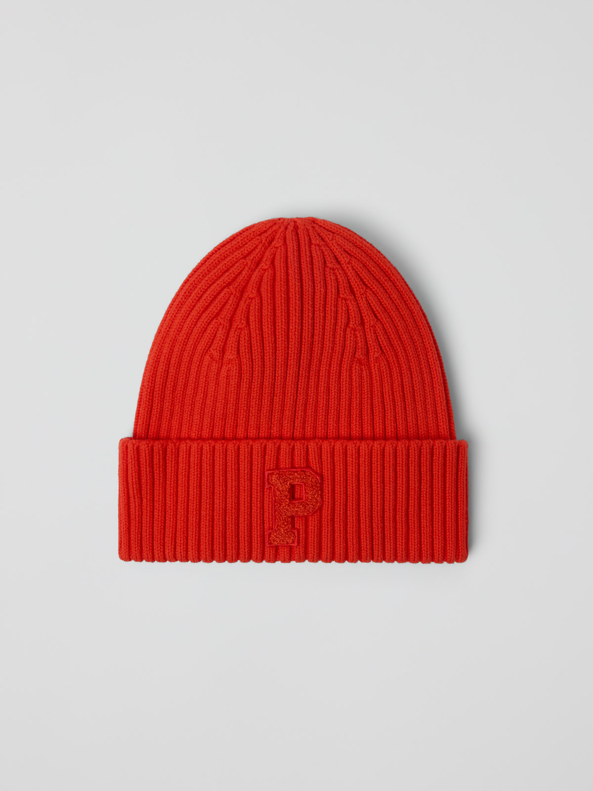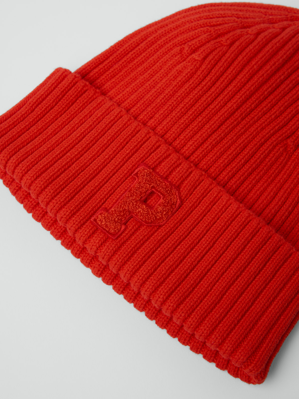 Ribbstickad mössa i ekologisk bomull – perfekt för småkyliga vårdagar. Mössan har ett uppvik i nederkant och en broderad applikation fram.