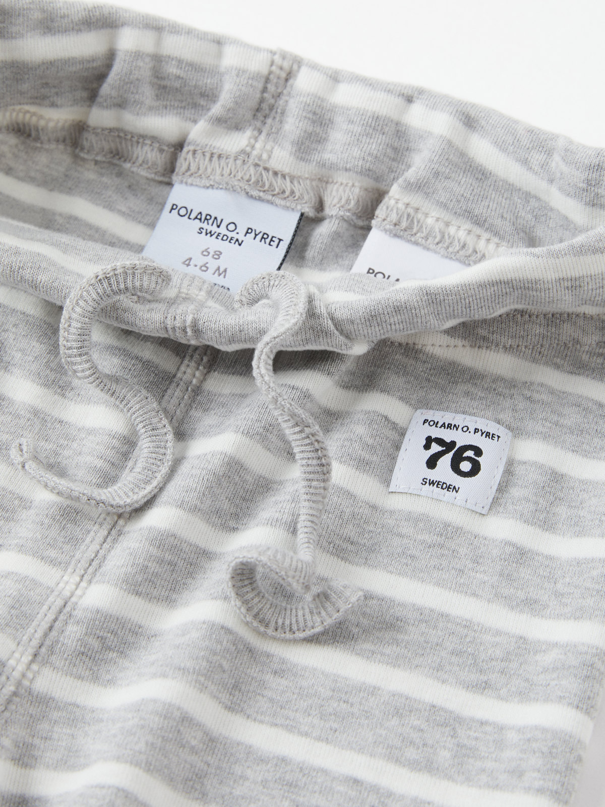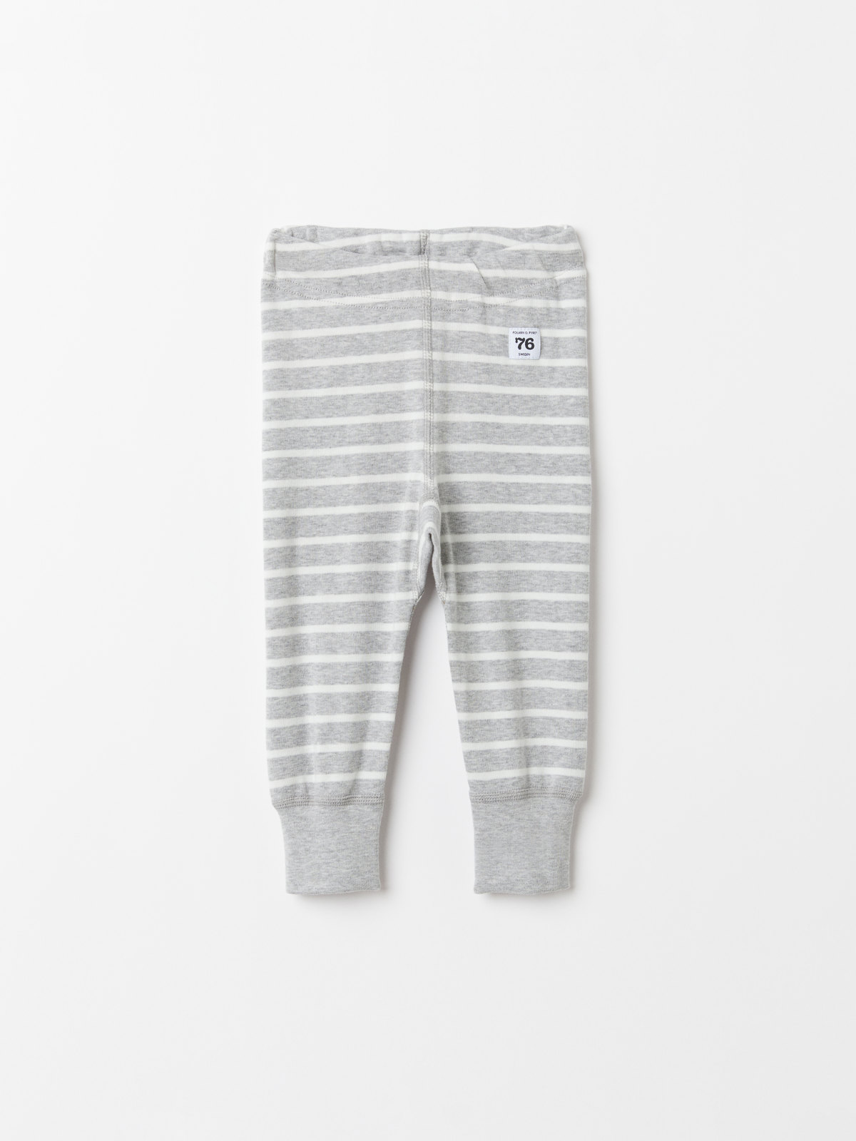 Ett par randiga byxor i 100% ekologisk bomull för baby. Byxorna har vår klassiska rand och elastisk midja som går att justeras med knytband. Byxorna har även mjuk elastiska muddar vid bensluten.