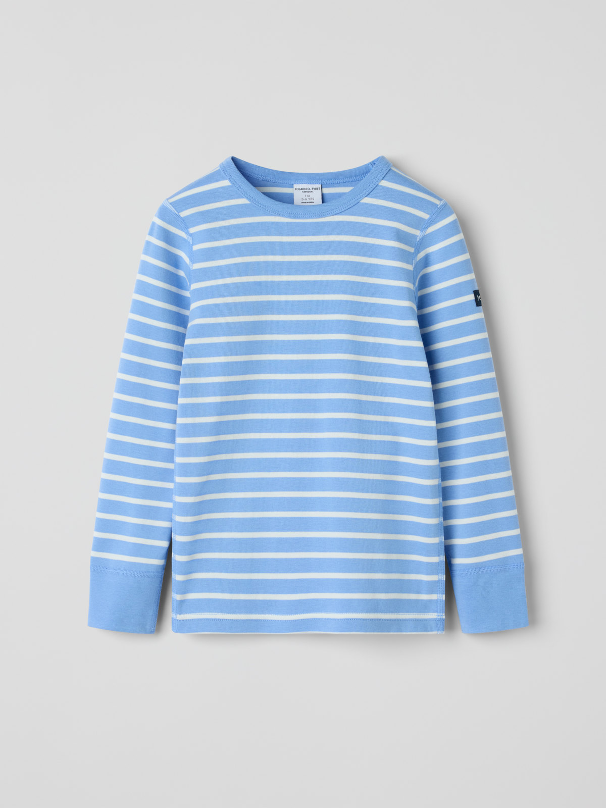 Vår klassiska randiga tröja i 100 % mjuk ekologisk bomull – ett älskat basplagg som är en självklarhet i allas garderob! Tröjan har mudd kring halsringningen och ärmsluten.